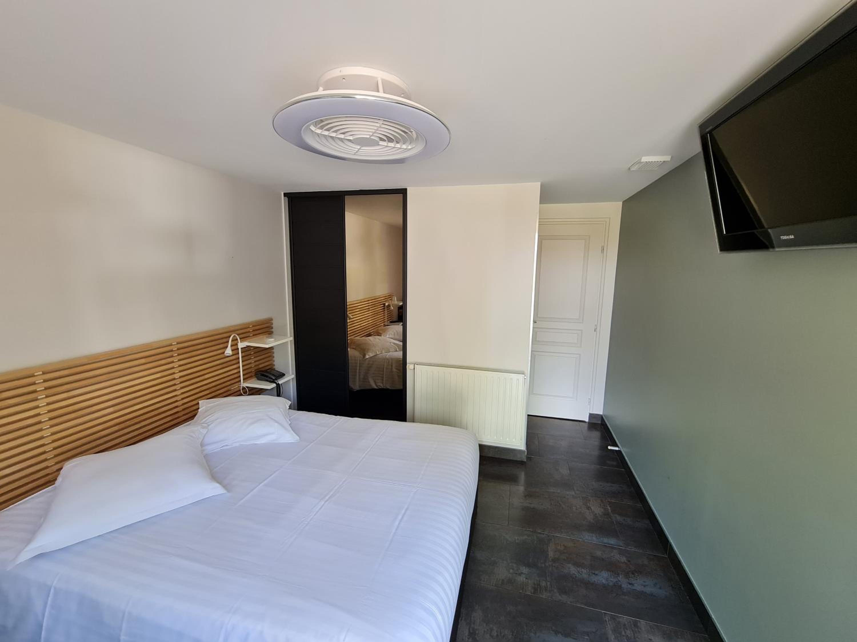 Les chambres sont très bien aménagées avec des équipements en parfait état (l'éclairage automatique de la salle d'eau et des wc est un plus; le plafonnier - ventilateur high-tech est pas mal aussi 👍)