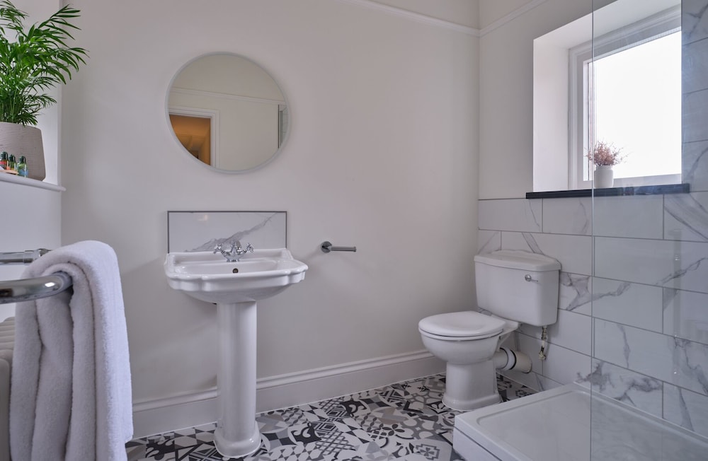 Bathroom bit tired, floor wonky, no night light had to put big bright light on if went to loo in the night.