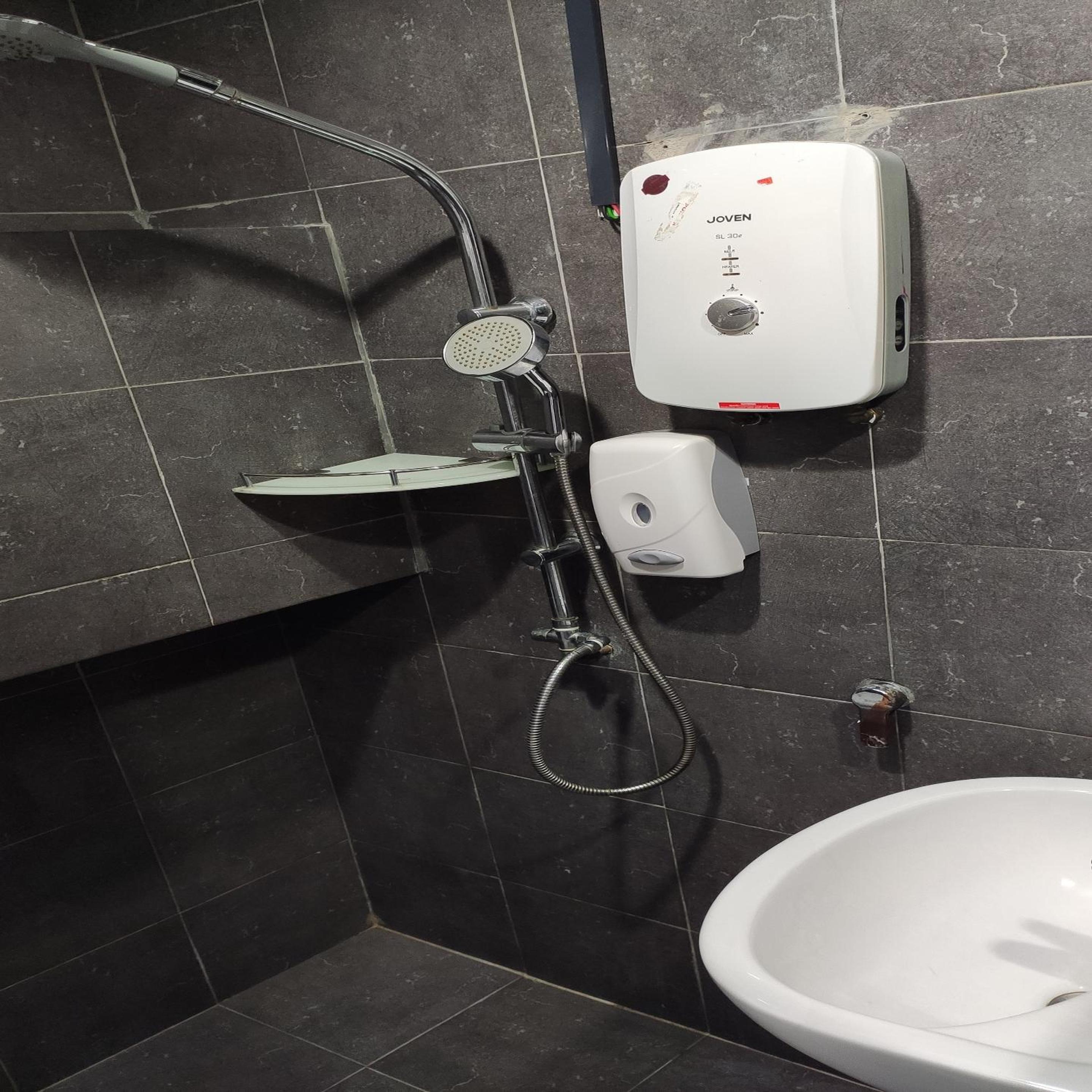 Pancuran air panas tidak berfungsi..cecair mandian tidak ditambah dan rosak..tersumbat..sinki tersumbat