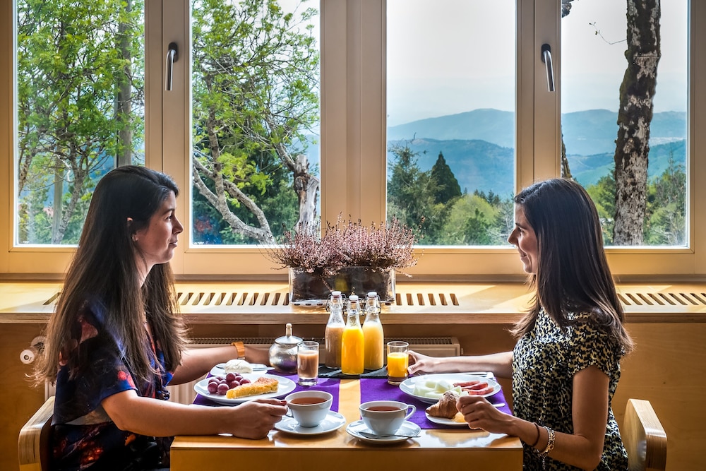 O pessoal é muito amável, sempre disponíveis para que te sintas bem e tenhas tudo o que precisas. Tiveram o detalhe de oferecer a opção de ficar com um quarto melhor que o contratado, e levaram-nos a visitar ambos os quartos. Sou muito indeciso e mudei de ideias duas vezes, e apesar disso, nunca puseram má cara. O hotel é num sítio muito agradável, no meio da natureza, ideal para relaxar 2 ou 3 dias. O detalhe do lanche buffet é fabuloso. O detalhe da oferta de massagem de mãos de 10 minutos, também. Em termos de espaço, há aspectos que se podiam melhorar. O duche é demasiado pequeno. O Spa também. A opção de jantar poderia ter um preço mais em conta, ou uma carta de snacks, por exemplo.