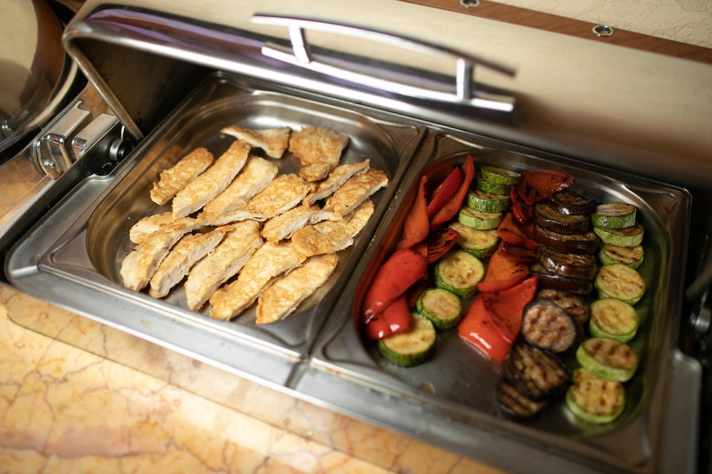 Individually-wrapped food options are available through room service
