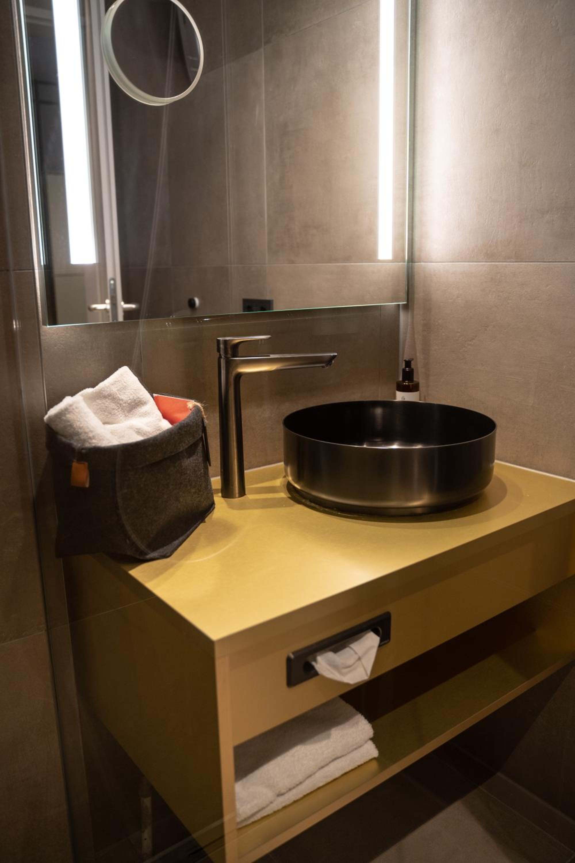 rooms are renovated and stylish, access to the Sauna was a big plus !