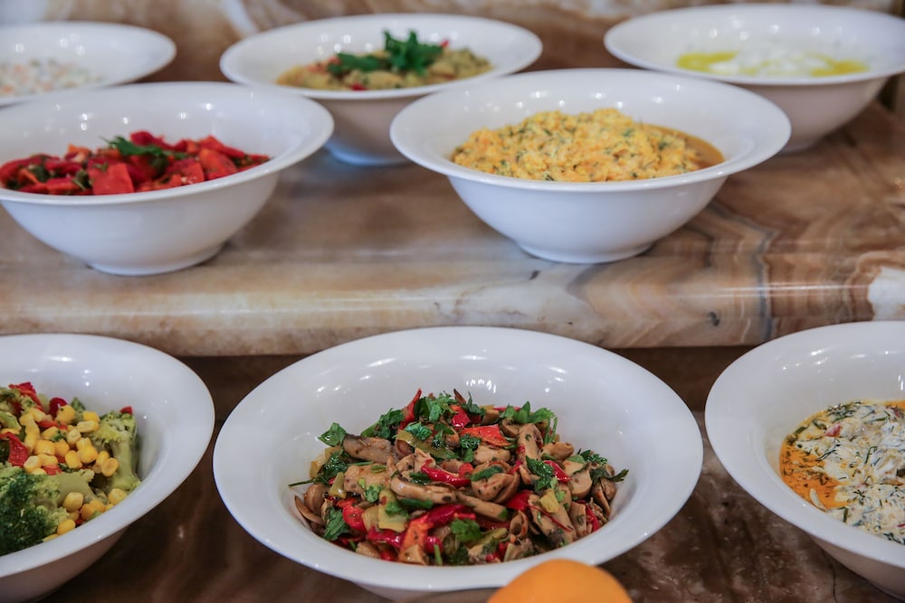 Gourmet Dining Experiences Savor delectable cuisine at our on-site restaurant or grab a quick snack at the coffee shop/cafe. With 24-hour room service and two swim-up bars, your culinary desires are met any time of day.