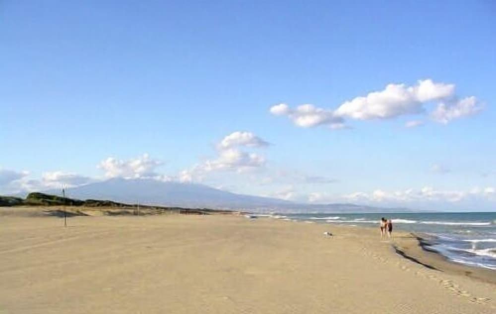 Ranta on tosi lähellä ja se soveltuu hyvin myös pienille lapsille. Kovemmalla tuulella pitää varoa aaltojen takaisinvirtausta. Rannalla on jonkin verran roskaa ja vedessä meduusoja, joten uimakengät on hyvä pitää koko ajan jalassa. Rannalta näkee hyvin Etnan. Rannalta on aamulla helppo tarkistaa Etnaa ympäröivä pilvitilanne, kun valitsee retkipäivää. Hotellin ympäristö on Sisilialle tyypilliseen tapaan hyvin roskainen.