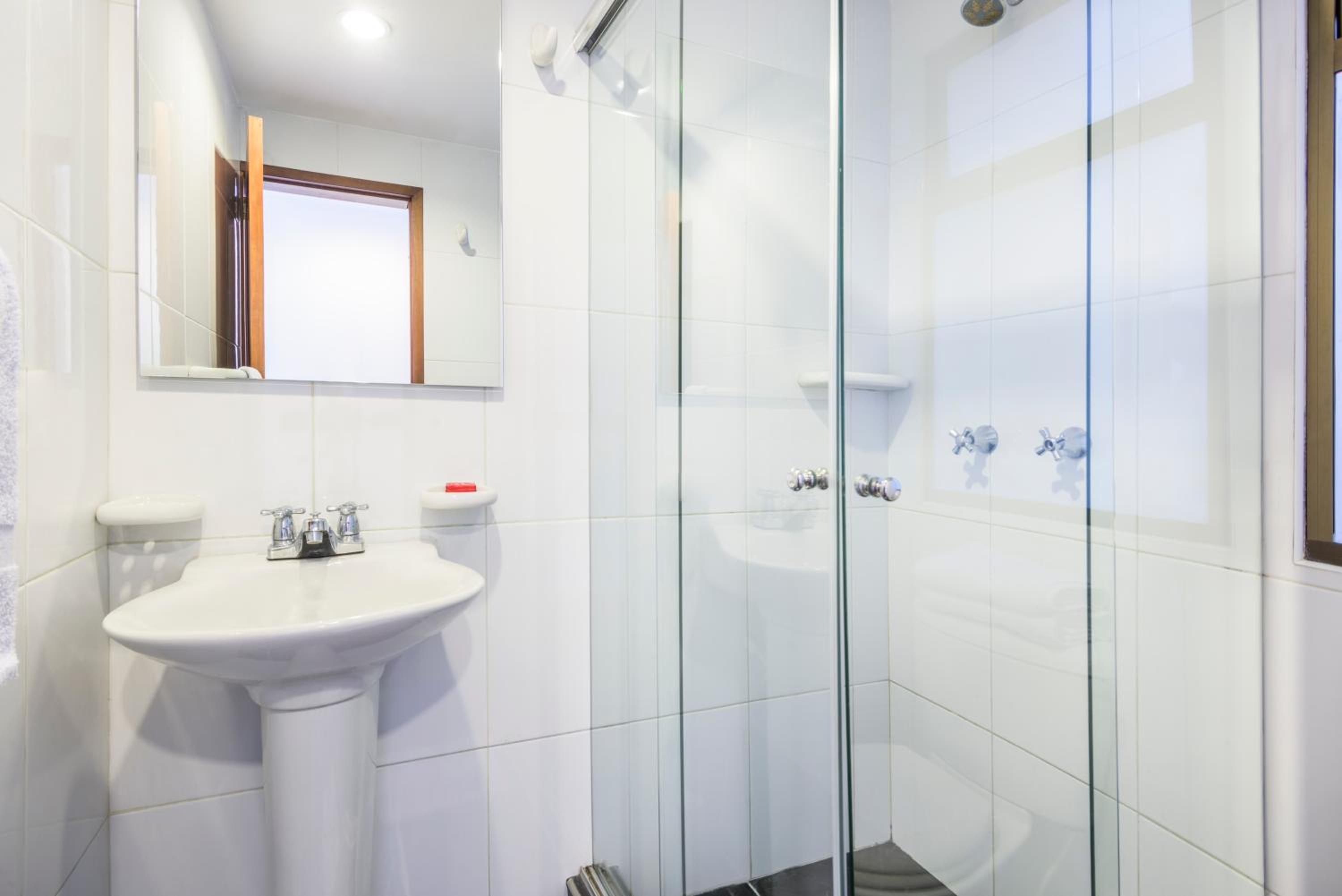 Se oye toda la bulla de las calles cercanas (bares y restaurantes), no tenían shampoo ni jabón, ni toalla para secarse las manos (aunque pregunté me dijeron que no), y tuve que ir a pedir para secarme el cuerpo porque tampoco me habían dejado.