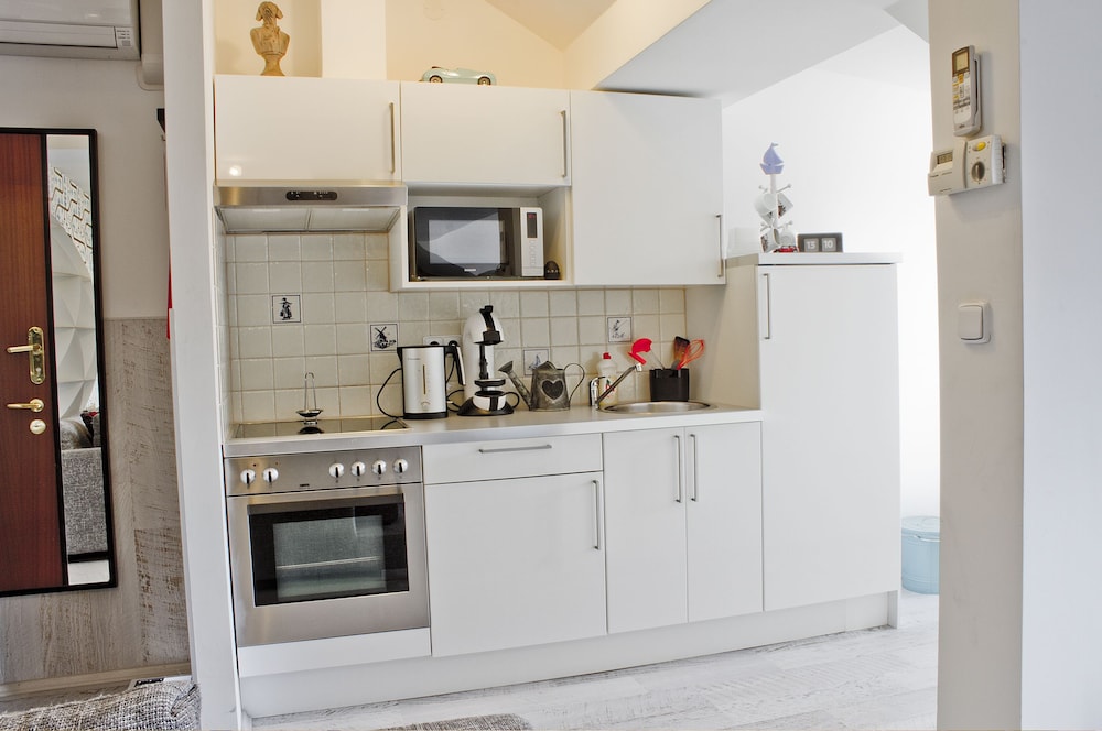 We stayed as a group of ladies, celebrating a 60th Birthday. We had the top floor apartment, which was spacious enough for us all and was nice and clean. There is a kitchen, if you wanted to cook food.