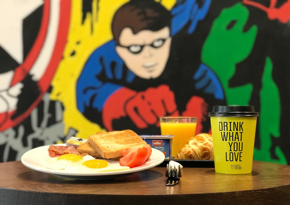 The hotel is about 15 mins walk from the National museum, close to the bars and restaurants, and about 30 mins walk from the river. A metro station is almost next door and the IP Pavlova tram stop is aprox 10 mins walk. So it is well placed for exploring Prague. The hotel does not have its own restaurant, but you get a discount at The Coffee Factory cafe next door.