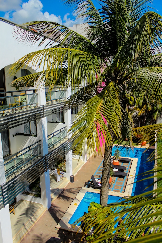 The place is conveniently located within 1-2 min walking distance to the beach, cozumel ferry, quinta avenida, parque fundadores, Ado bus station, and taxi stand. Fruit vendors are just across the hotel, as well as other shops. There is a 7-11 convenient store around the corner. Our room (junior suite) is on the 2nd floor—has a refrigerator, kick ass size smart TV, coffee maker. Amenities also include 2 small bottles daily, toiletries. Daily housekeeping. The towels are a bit dingy. The bed is somewhat hard. The wifi works in the room— there was a period of disconnection but it was resolved by a re-boot. There is no phone in the room to get in touch with reception so you have to get down there if needed. The room is very spacious and bright. There are Convenient outlets to charge your mobile devices. It has a balcony with 2 chairs and a small Table. It has a small pool. The hotel is Very clean. The staff are friendly.