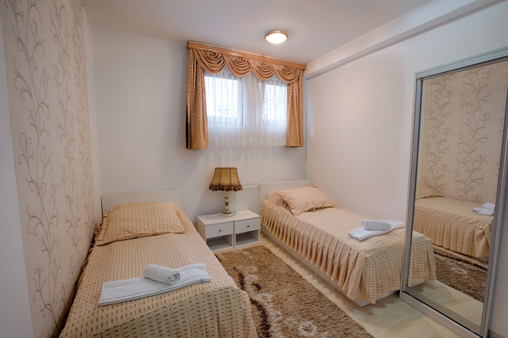 Duvarları çok kötüydü odalardan aşırı ses geliyordu yan odadaki insanlar sanki kendi odanız da gibi oluyordu banyoyu kullanamadık odayı su basıcaktı banyo alttan su kaçırıyordu fön makinesi çalışmıyordu otel görevlisi bookingden ödeme yaparken şehir vergisi ödememize rağmen booking yanlış hesaplamış diye 28 Mark ilave talep etti verdik bir sonraki gün bu sefer ben yanlış hesaplamışım diye 4 mark daha istedi yine verdik kısacası asla tavsiye etmem