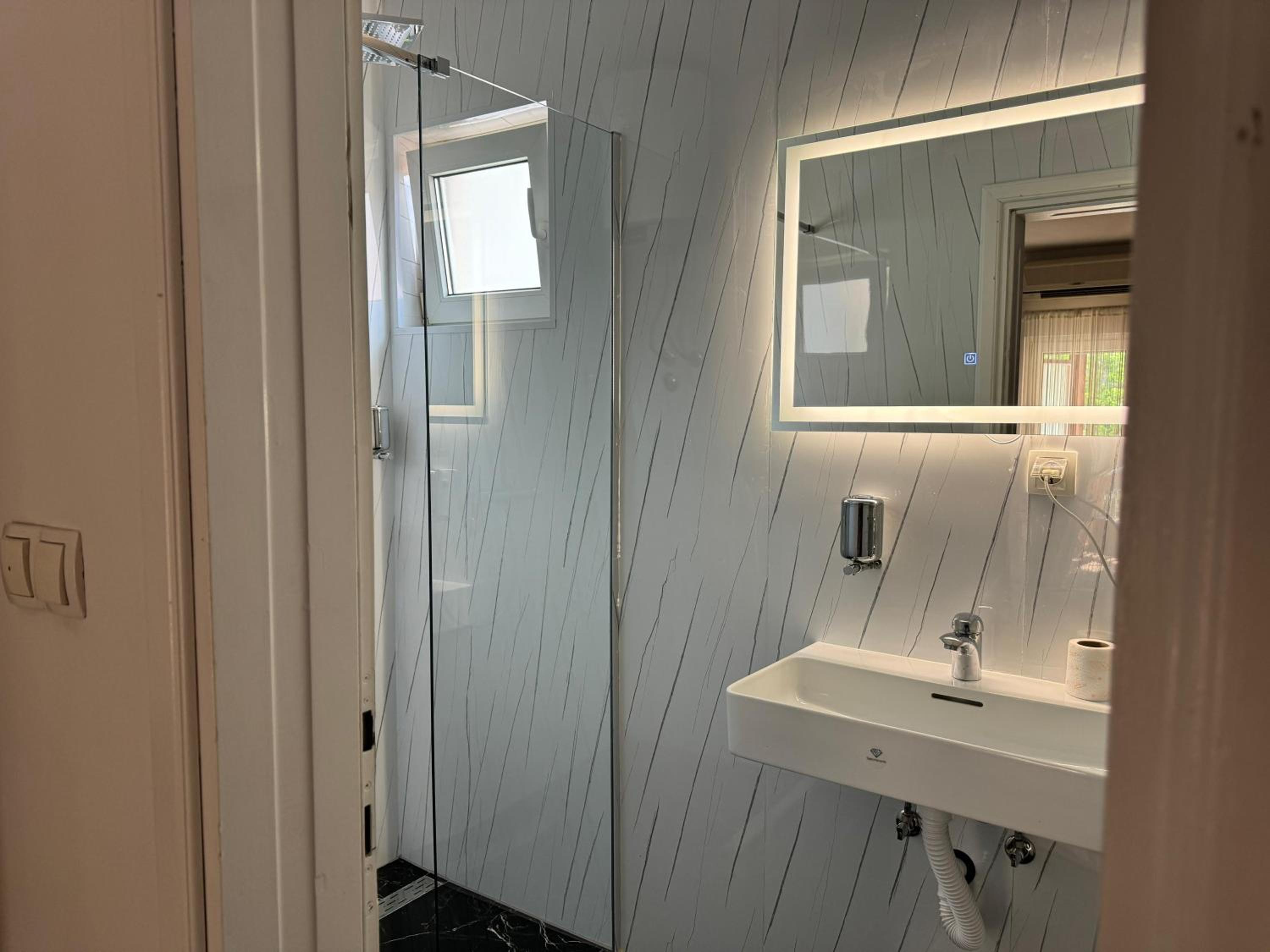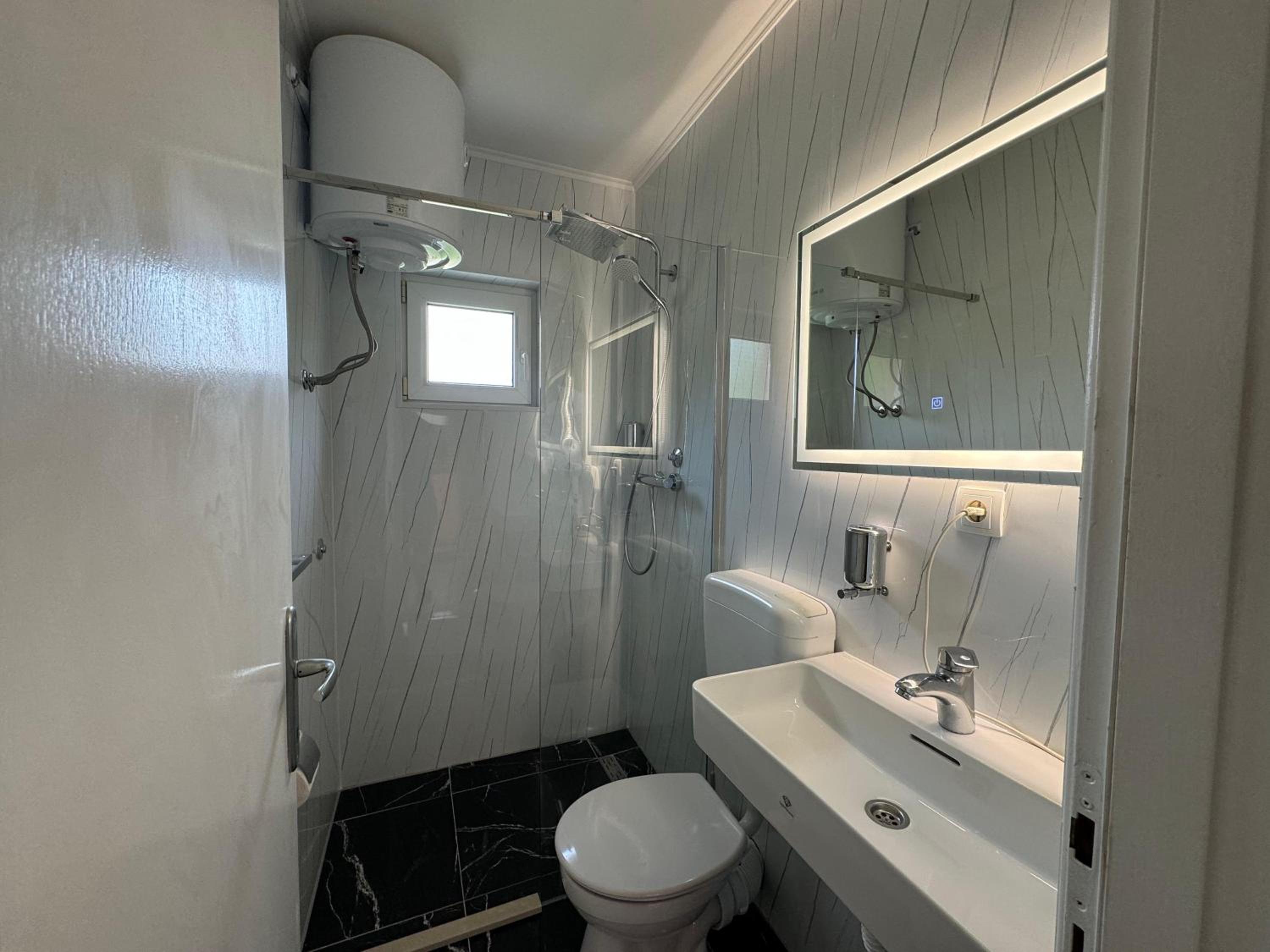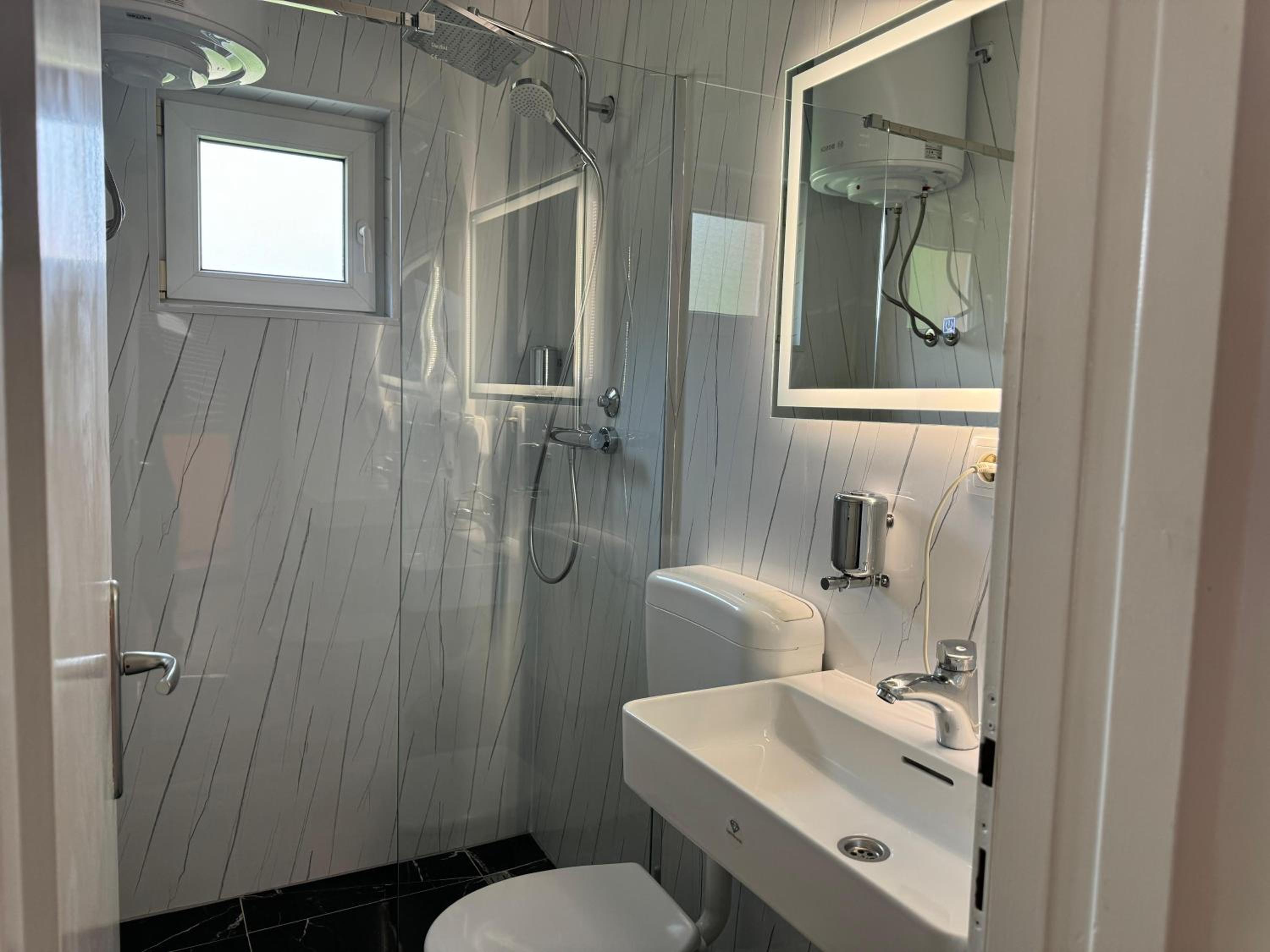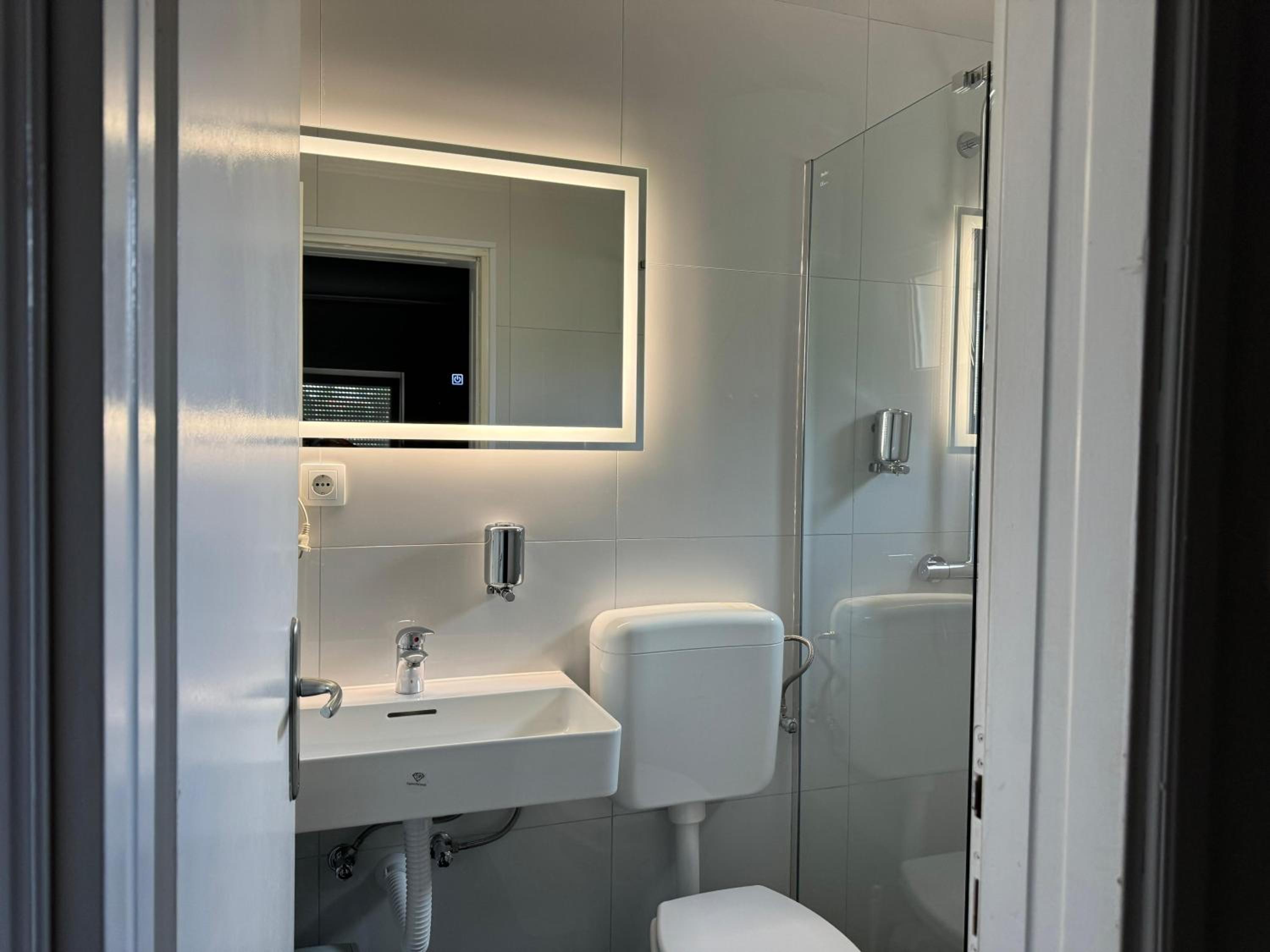 Leicht zu finden und man konnte es gut anfahren und ohne Probleme parken. Der Mitarbeiter an der Rezeption war sehr nett. Eigenes Bad und angeblich auch Trinkwasser, wir habens getrunken und uns hat nichts gefehlt.