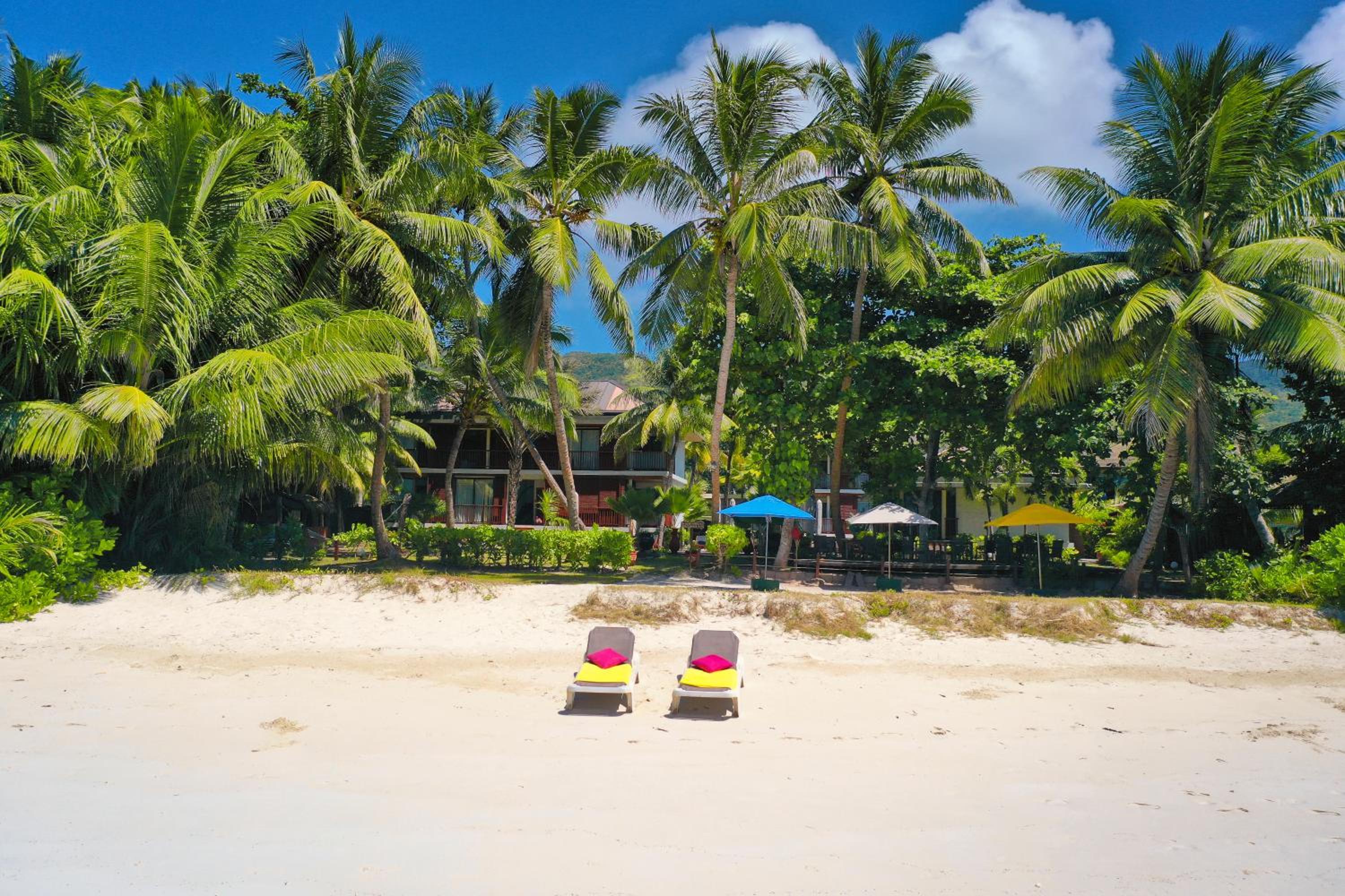 Dhevatara Beach Hotel offers 5-star boutique accommodation on the picturesque island of Praslin. The individually designed suites, featuring elegant handmade furniture inspired by nature, create a serene atmosphere for guests. Each suite includes modern amenities, an outdoor seating area, and luxurious bath products for a pampering experience.