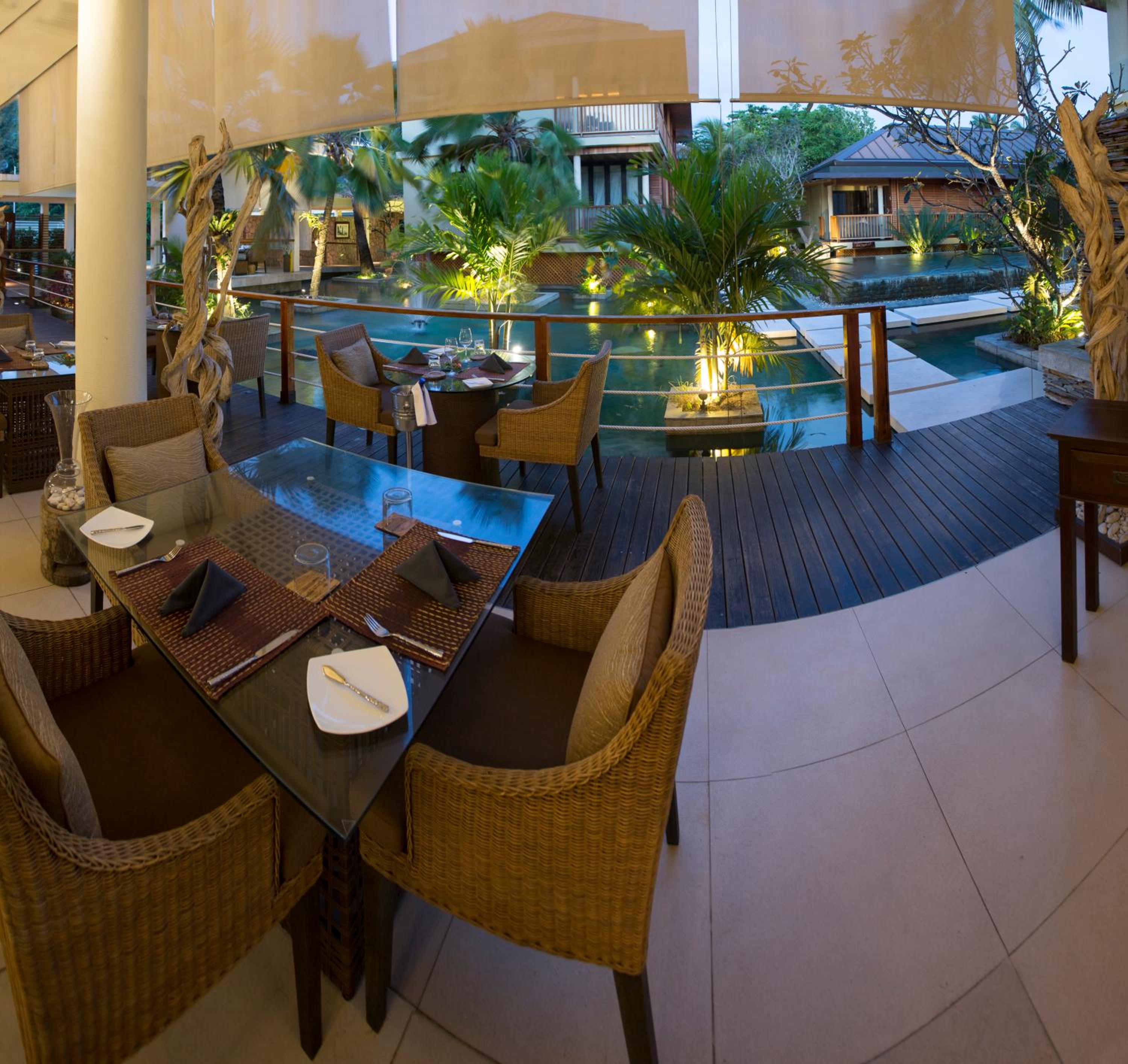 Indulge in a culinary journey at the hotel's à la carte restaurant, overlooking a beautiful water garden. The fusion cuisine, blending Mediterranean, Asian, and Creole flavors, promises a delightful dining experience. Pair your meal with fine wines or exotic cocktails at the open-air lounge bar, offering a relaxing ambiance.