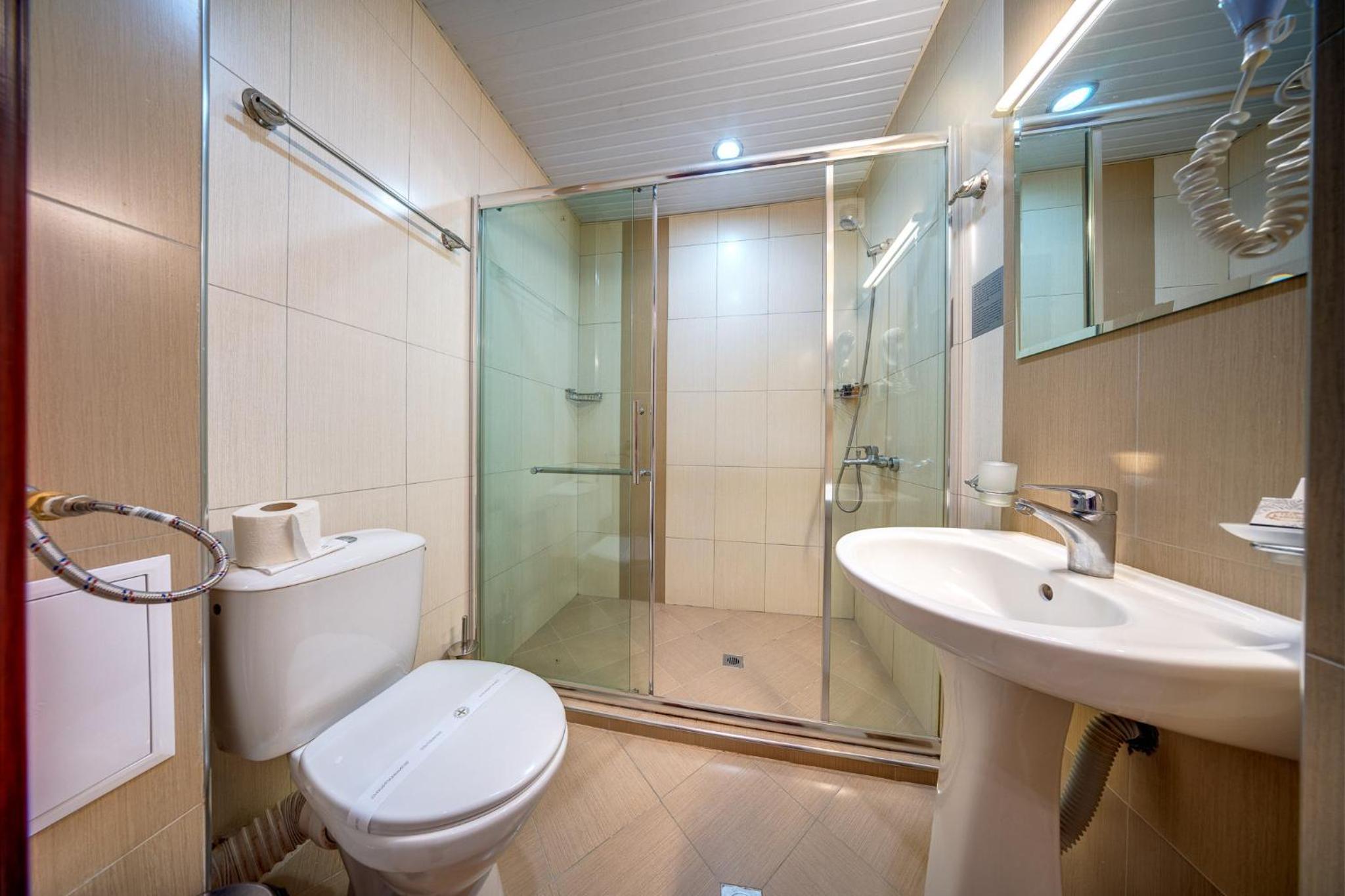 Soğuk ve kar tatilinde en aradığınız şey sıcaklık ve odalar çok sıcak. Banyo aldığınız alanda üşümeyin diye elektrikli minik bir soba ile düşünülmüş.