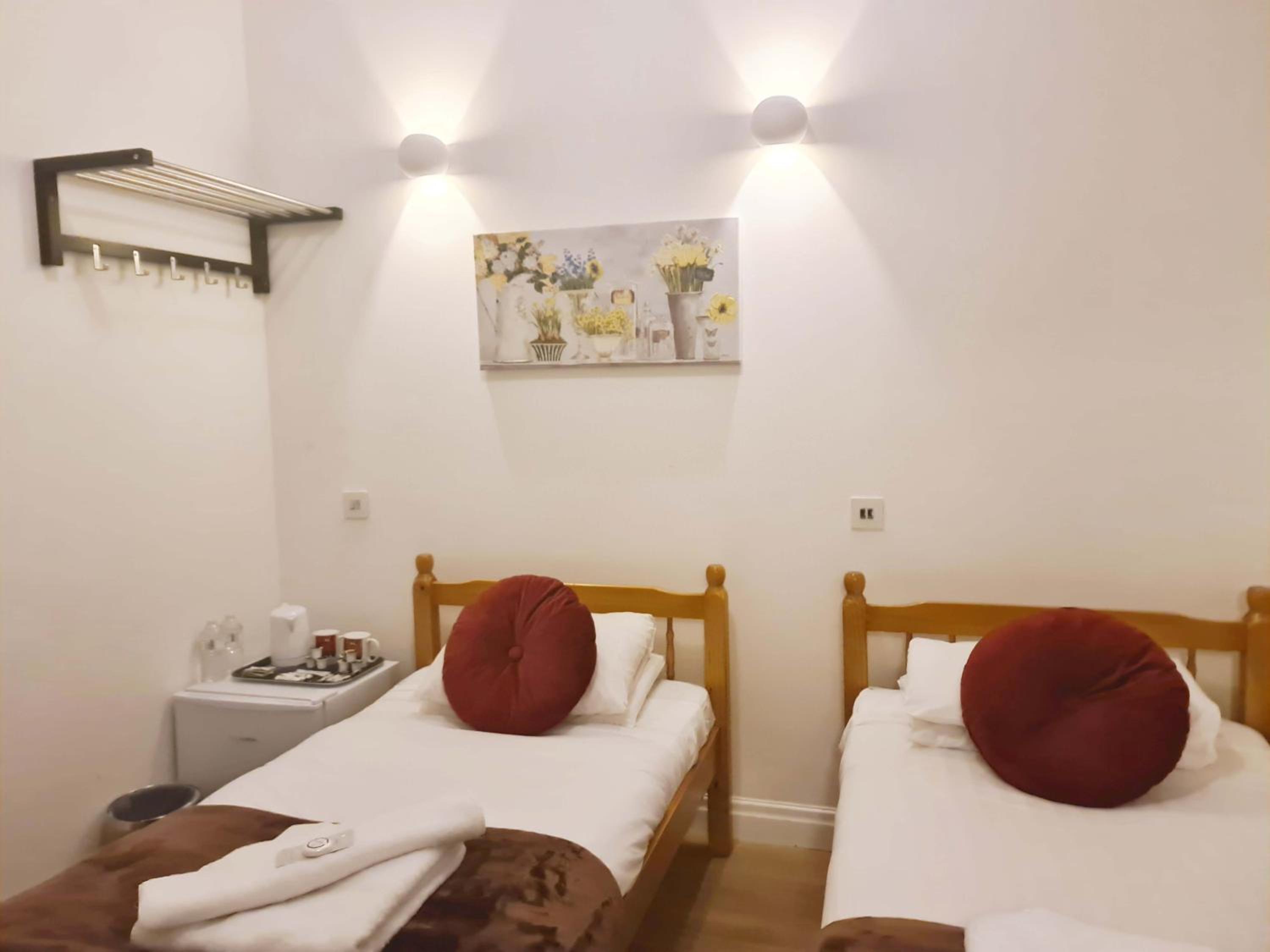 Pleasant staff and a great location. The hotel has a very warm, family-like atmosphere. Guests are treated with many thoughtful extras such as cookies, coffee, candies, and water available throughout the stay. The English breakfast is excellent and a great way to start the day.