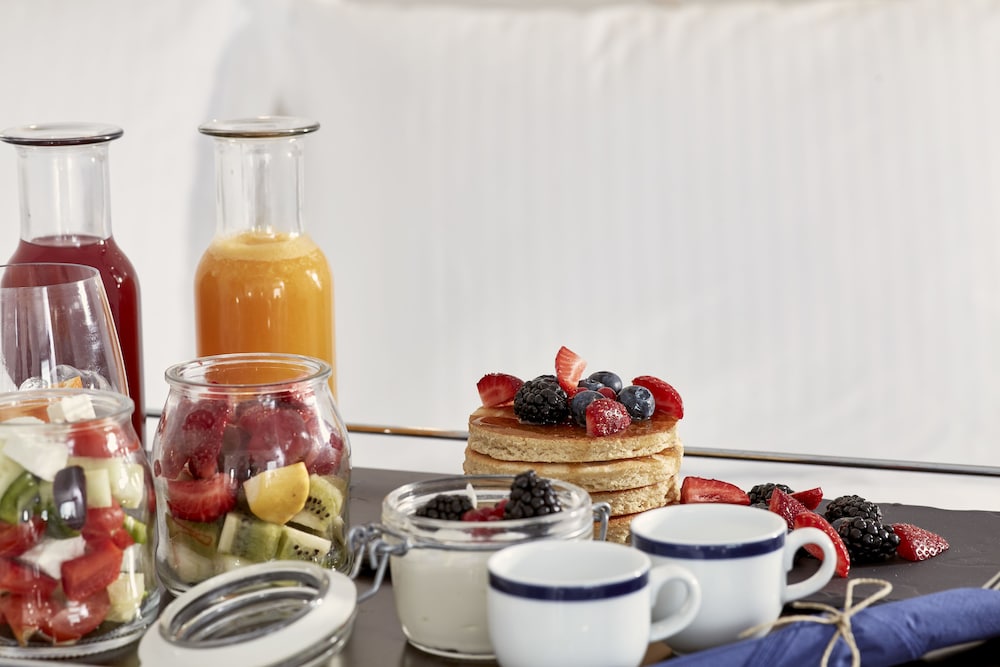 Individually-wrapped food options are available through room service