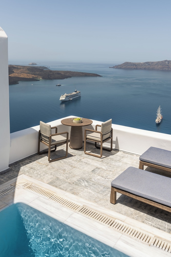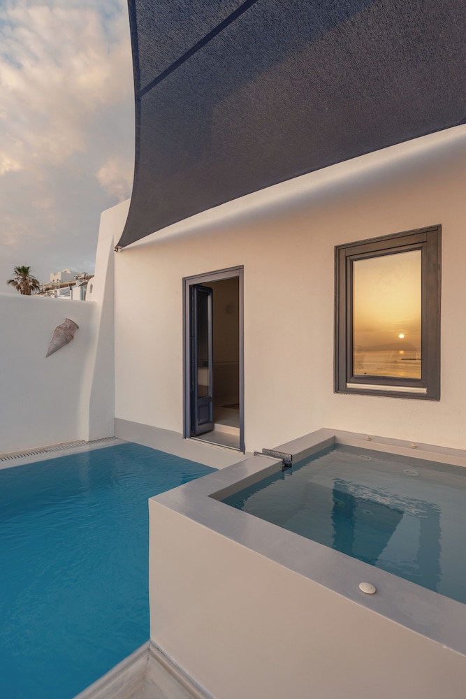 Everything about Homeric poems was magical and top notch! We phoned ahead with our arrival date and time…a porter was waiting to gather our luggage and bring us to this lovely boutique hotel. We were greeted with smiles by everyone and a surprise upgrade to our room. The rooms are very spacious and beautifully appointed. We ended up with a plunge pool and hot tub on our deck, with a table for coffee and breakfast in the morning and wine with a view at night… including two sunbathing loungers. The view couldn’t be more perfect!! With the caldera at your feet, shops and restaurants within a short walk and quintessential Santorini style all around it was nothing short of perfect. The breakfast that is personally delivered to you your room was incredible!! By far the best feta and Greek yogurt I’ve ever had.