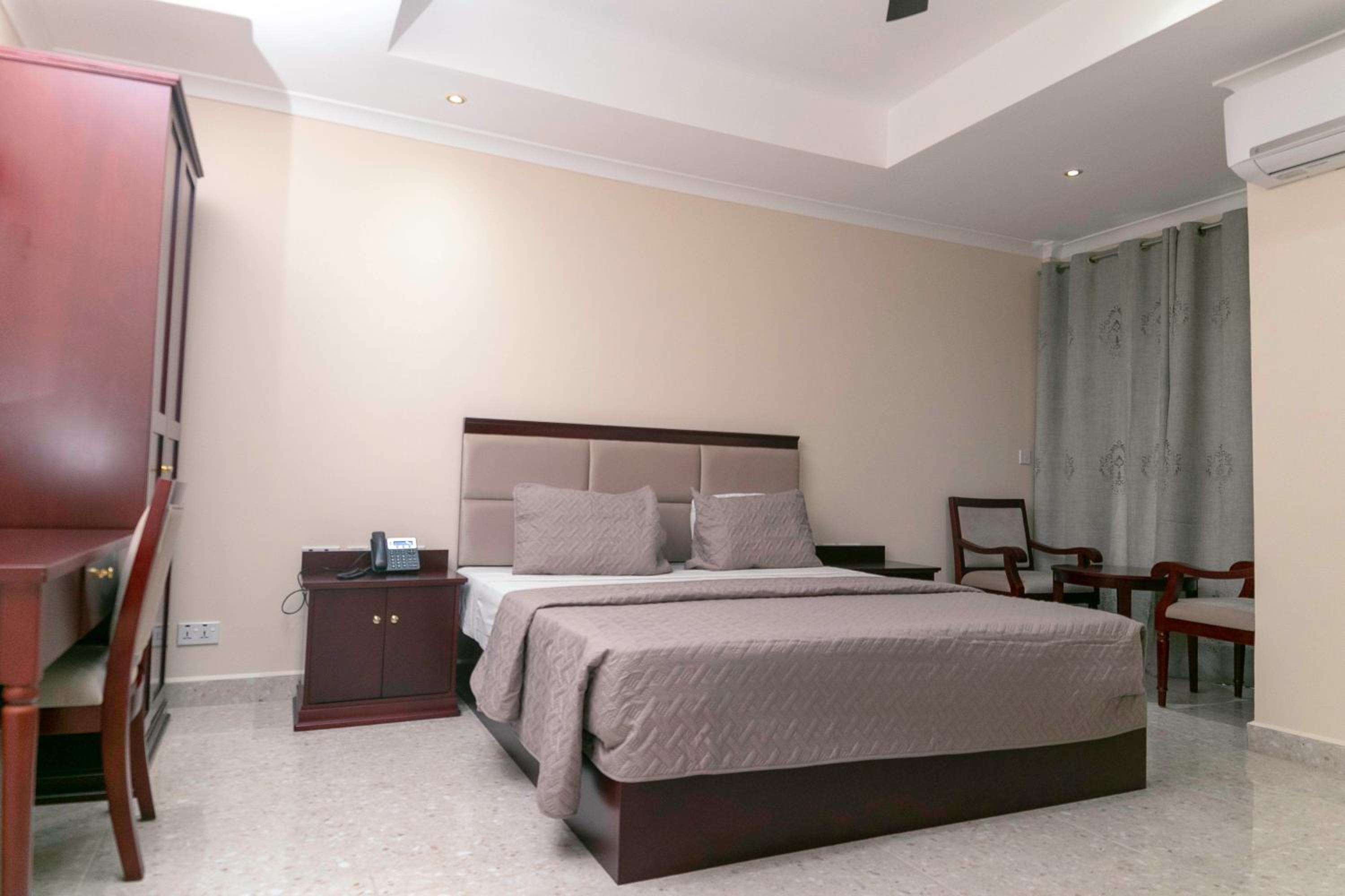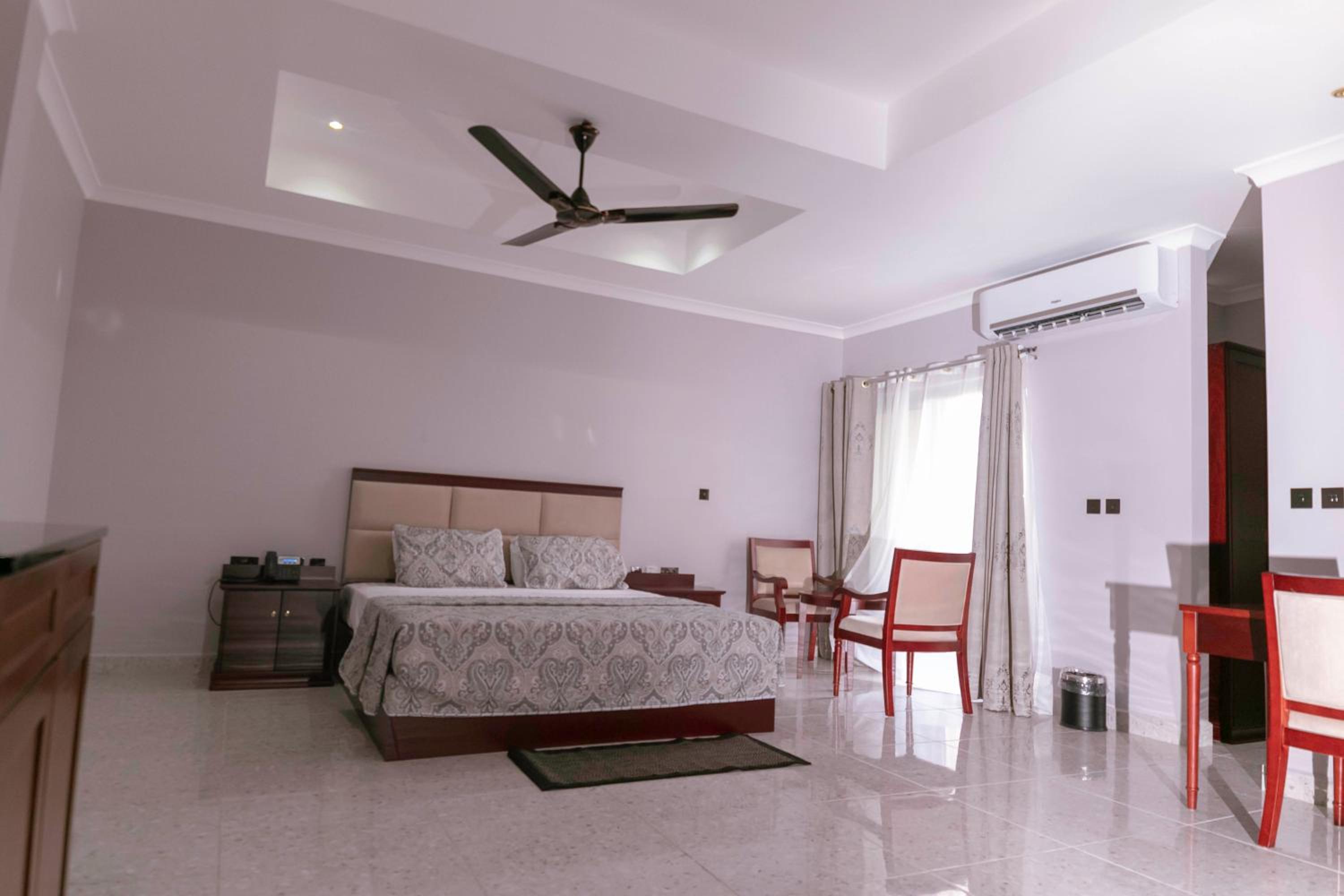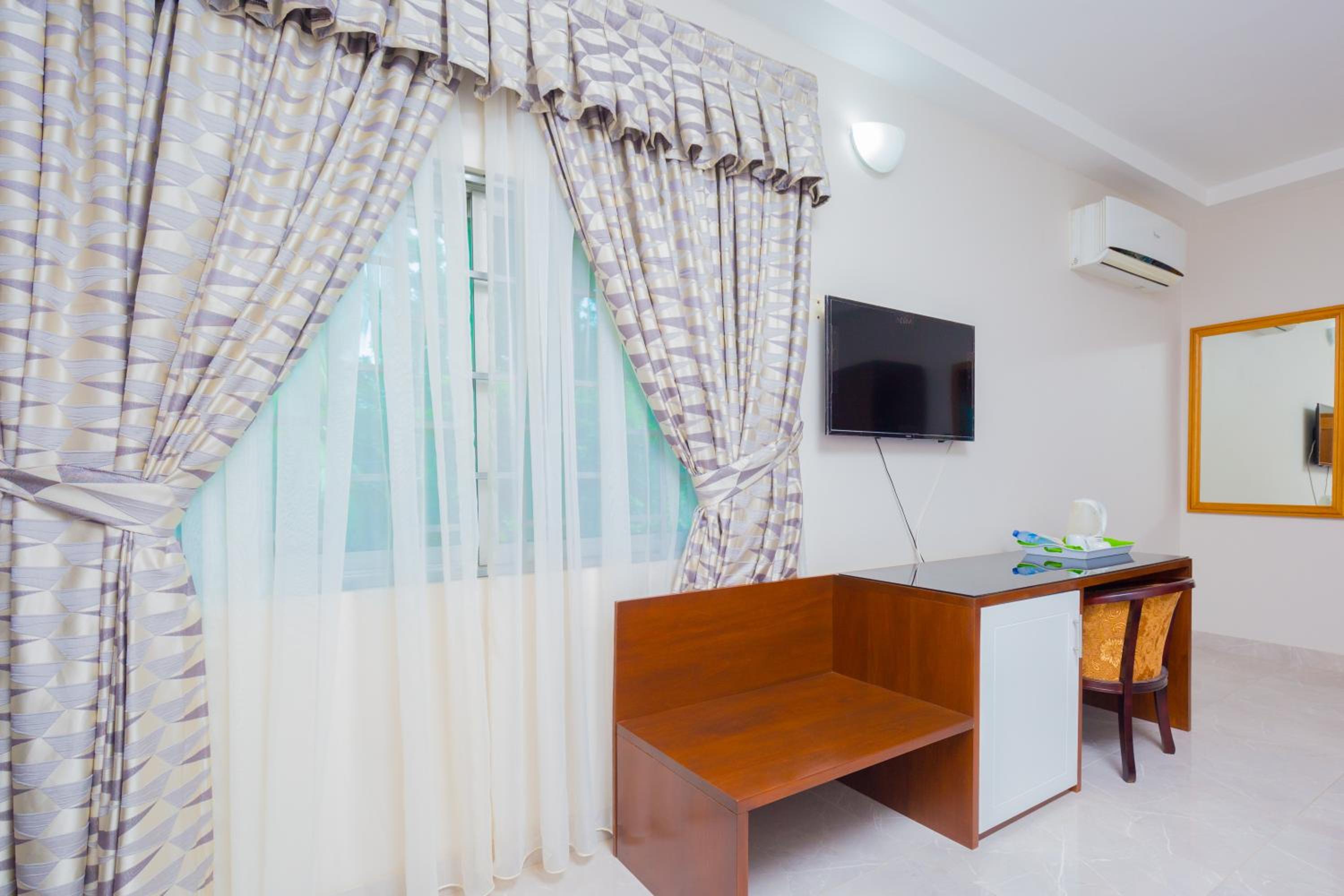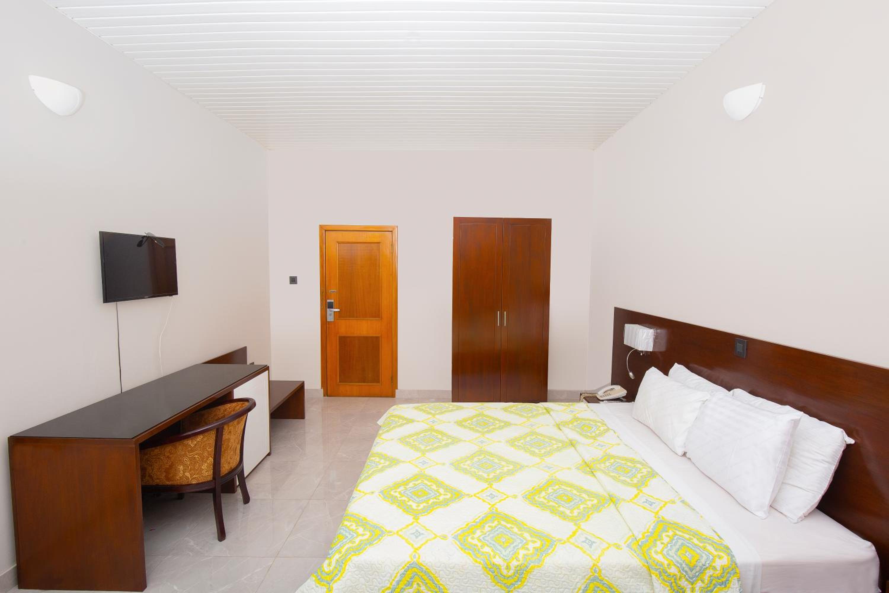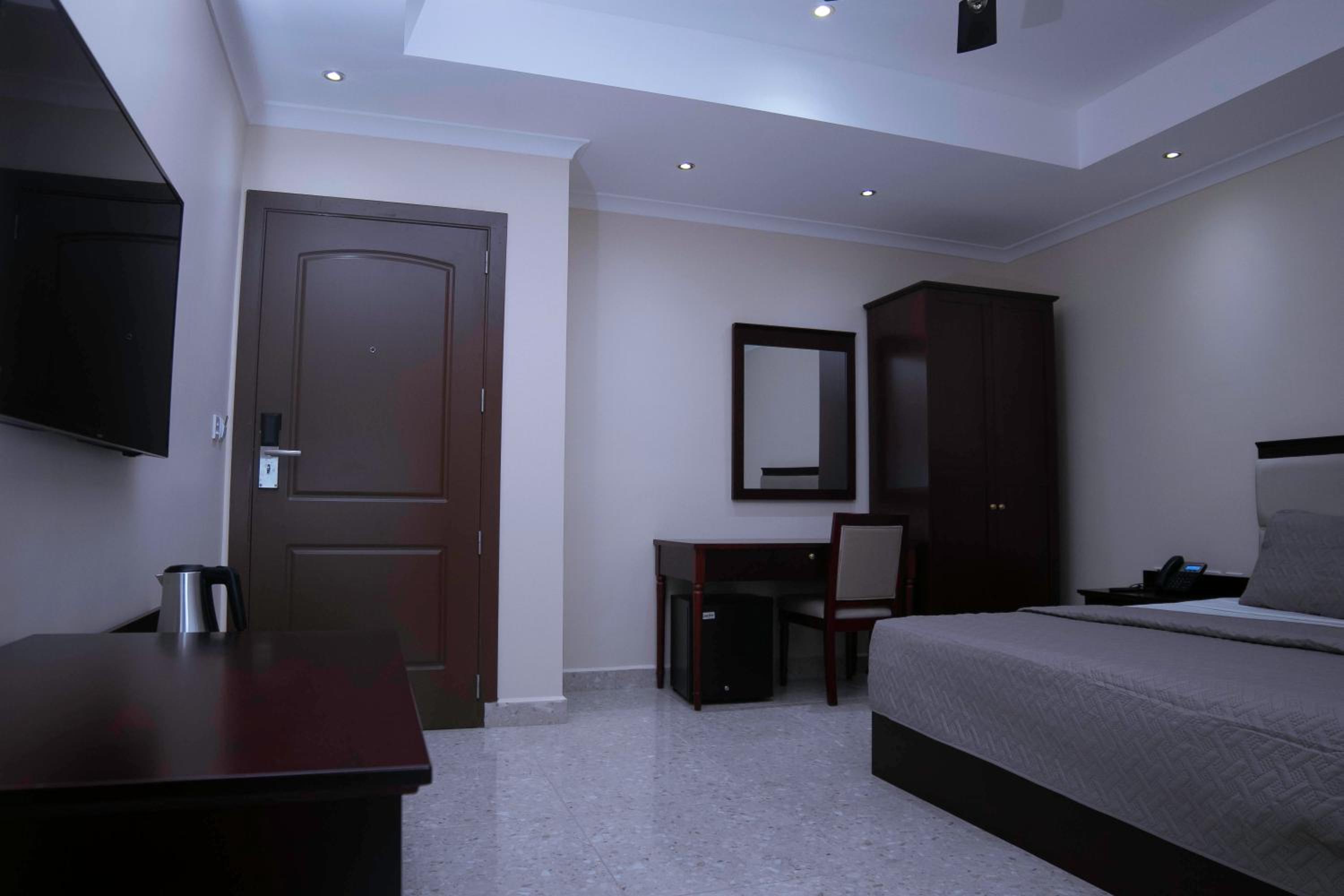 Monarch Hotel, located just 4.5 km from Roqad Accra International Airport, offers air-conditioned rooms with free Wi-Fi and balconies. Each room features a satellite TV, minibar, modern decoration, and a private bathroom, ensuring a comfortable stay for guests.