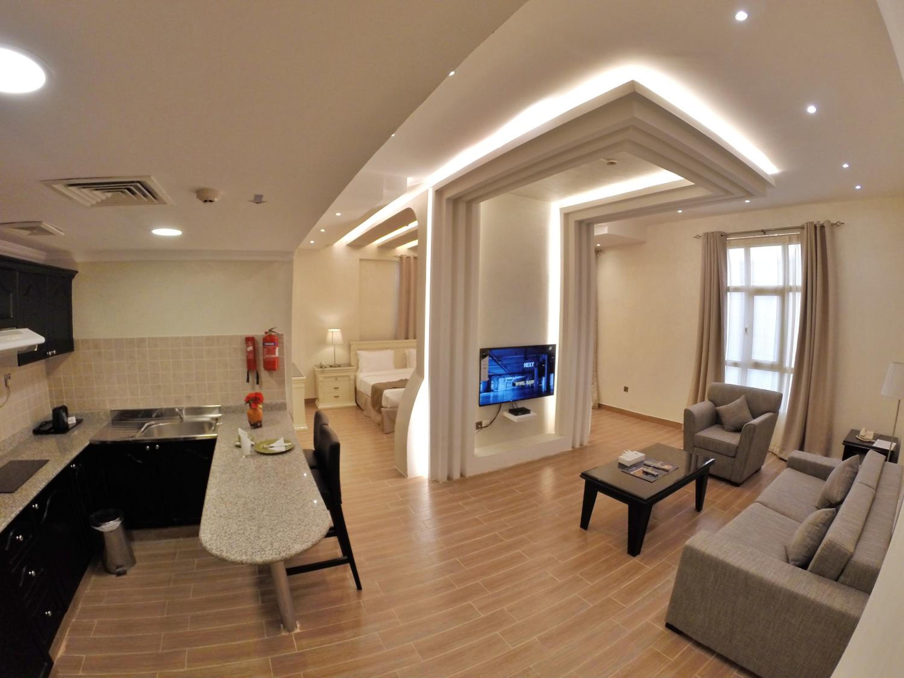Elegant Accommodations: Le Park Hotel in Al-Sadd offers beautifully furnished rooms, including suites with separate bedrooms, a kitchenette, and a living room.