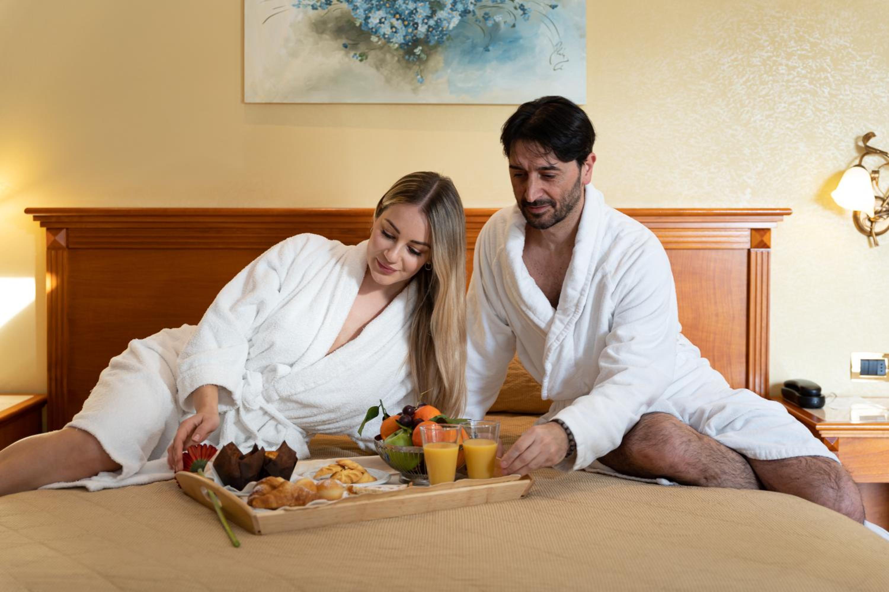 Each room is elegantly decorated and features modern amenities including air conditioning, satellite TV, and a private balcony or terrace.