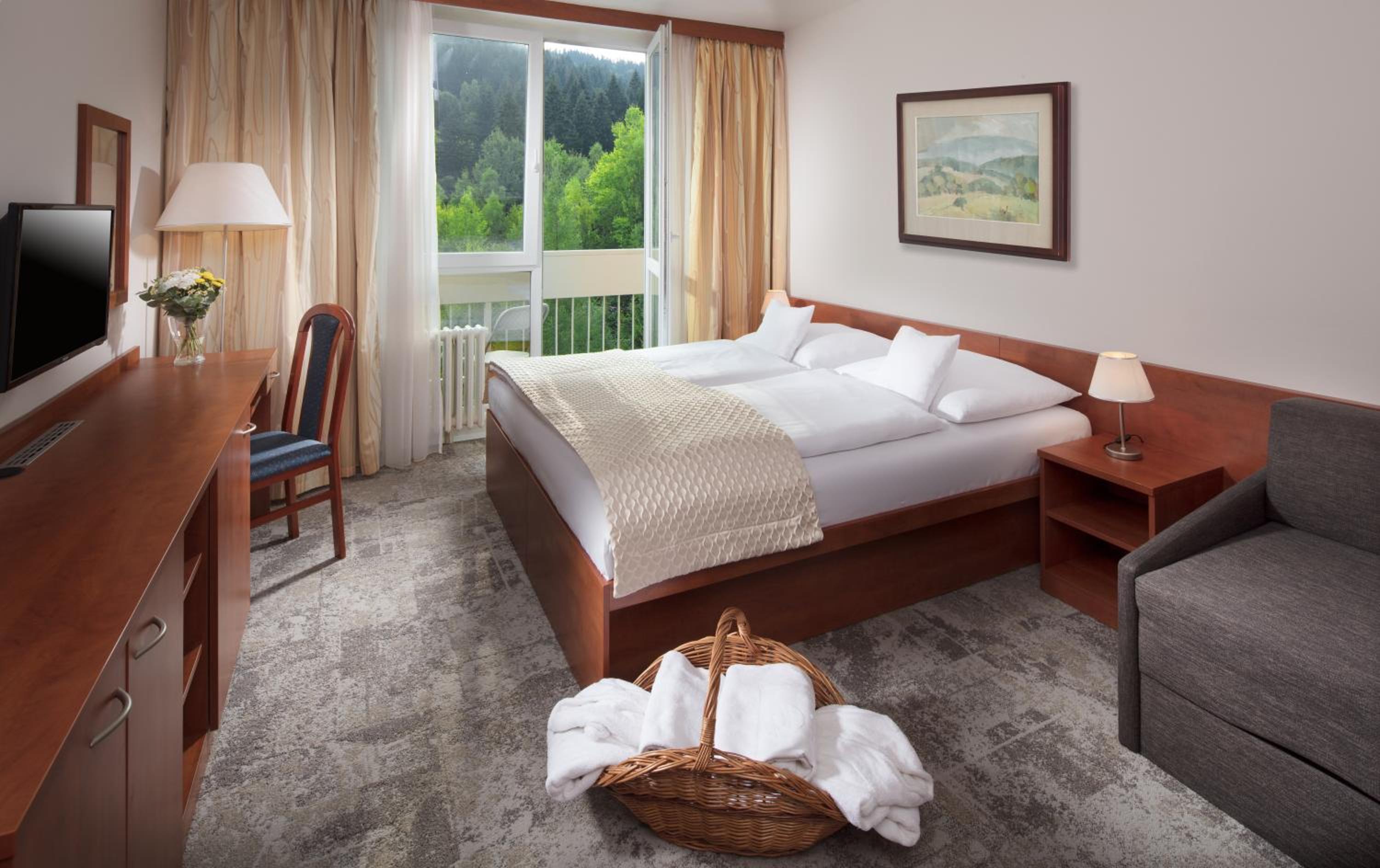 Pobyt mega udany pokoje przestronne bardzo czysto i ciepło. Śniadania i obiadokolacje rozmaite i pyszne. Obsługa bardzo pomocna i zawsze uśmiechnięta. Na duży plus bliskość stoku narciarskiego i wypożyczalnia sprzętu w hotelu. Do każdego pokoju szafka w dużej narciarnia. Przy hotelu przestronny parking.