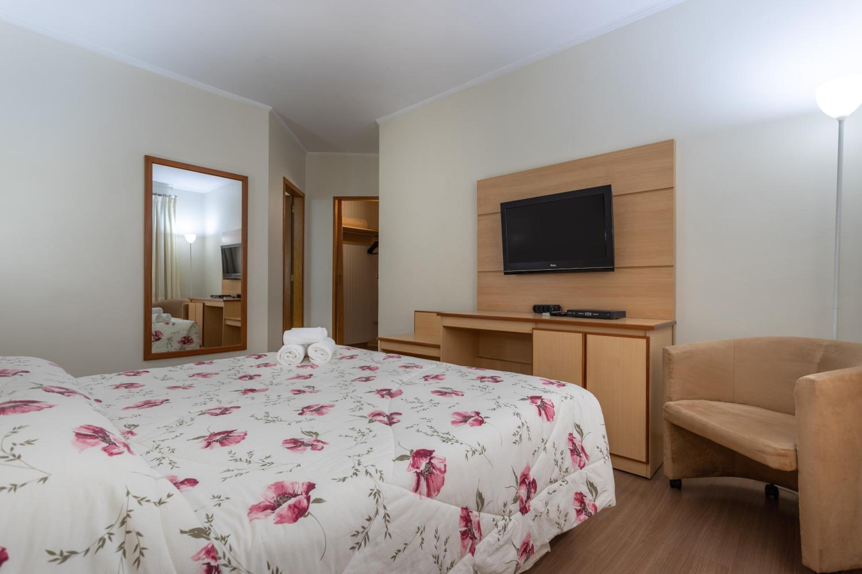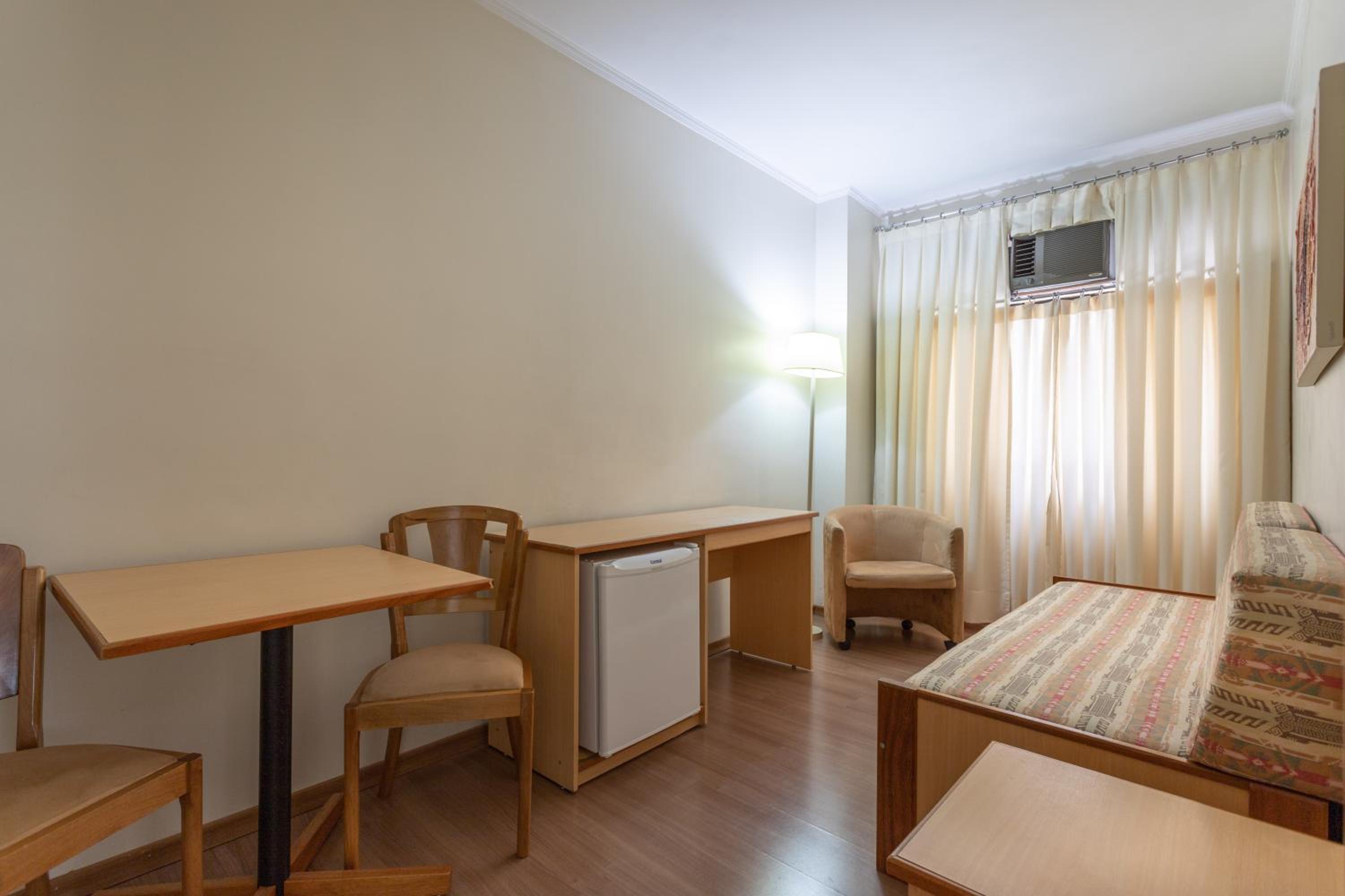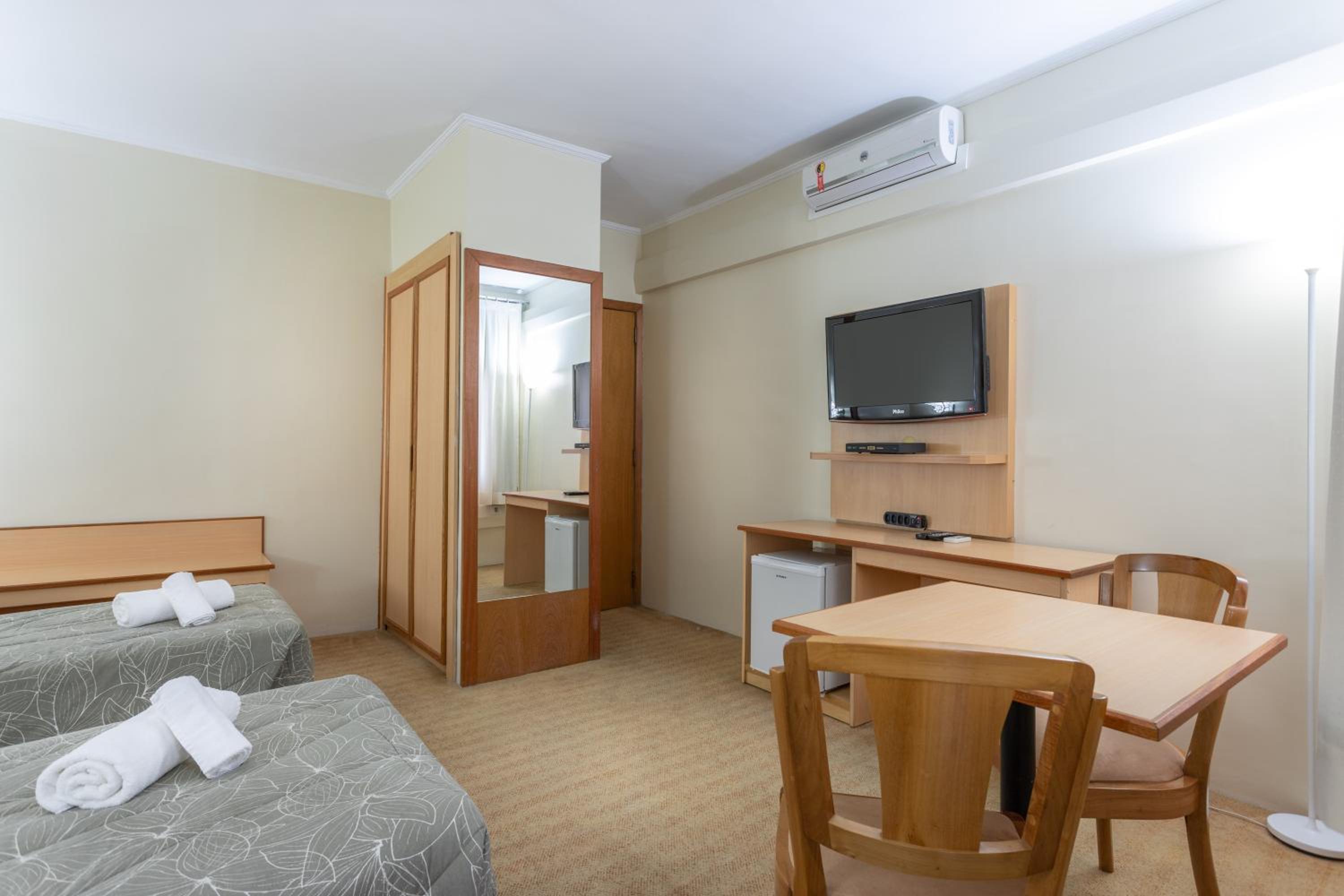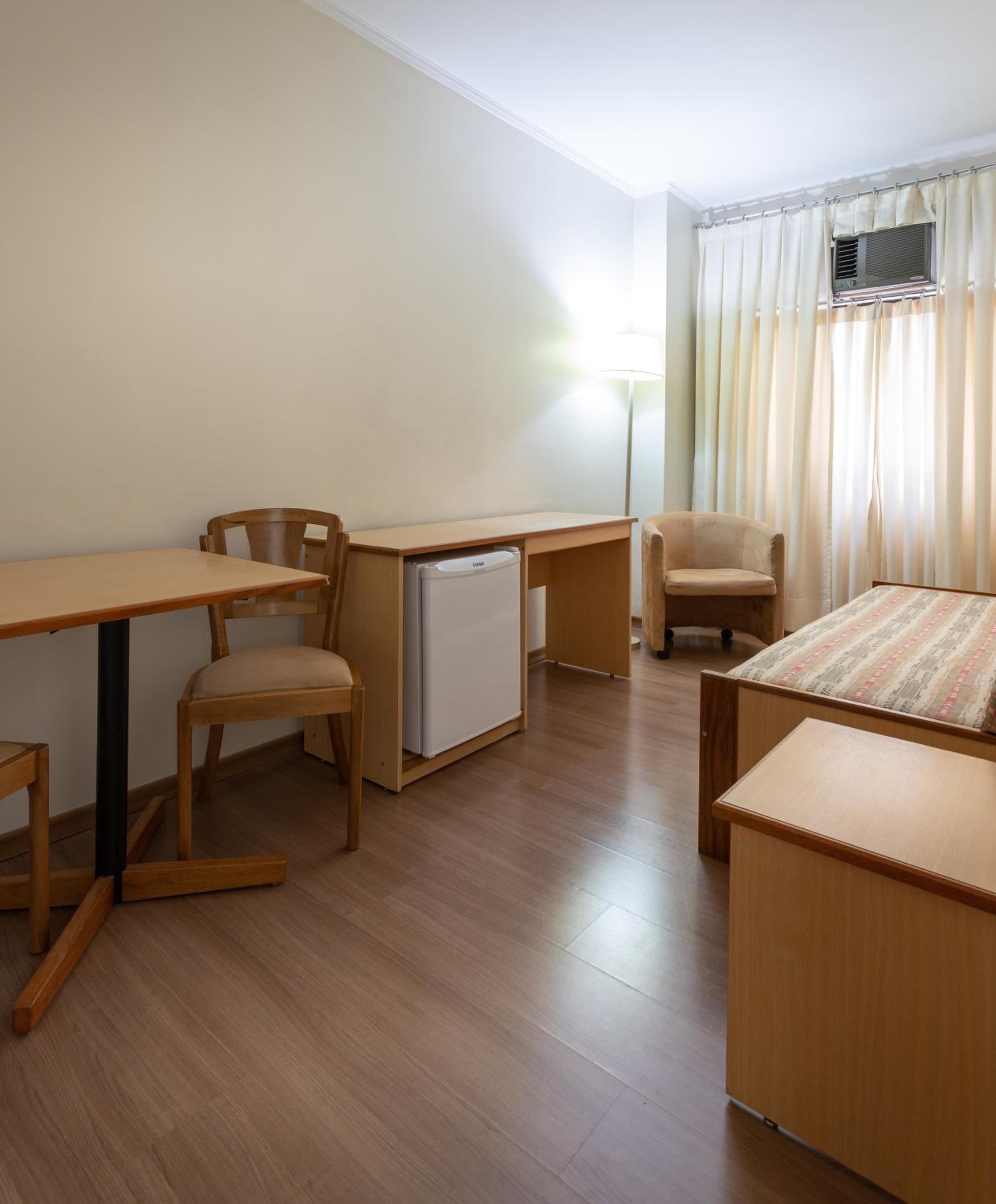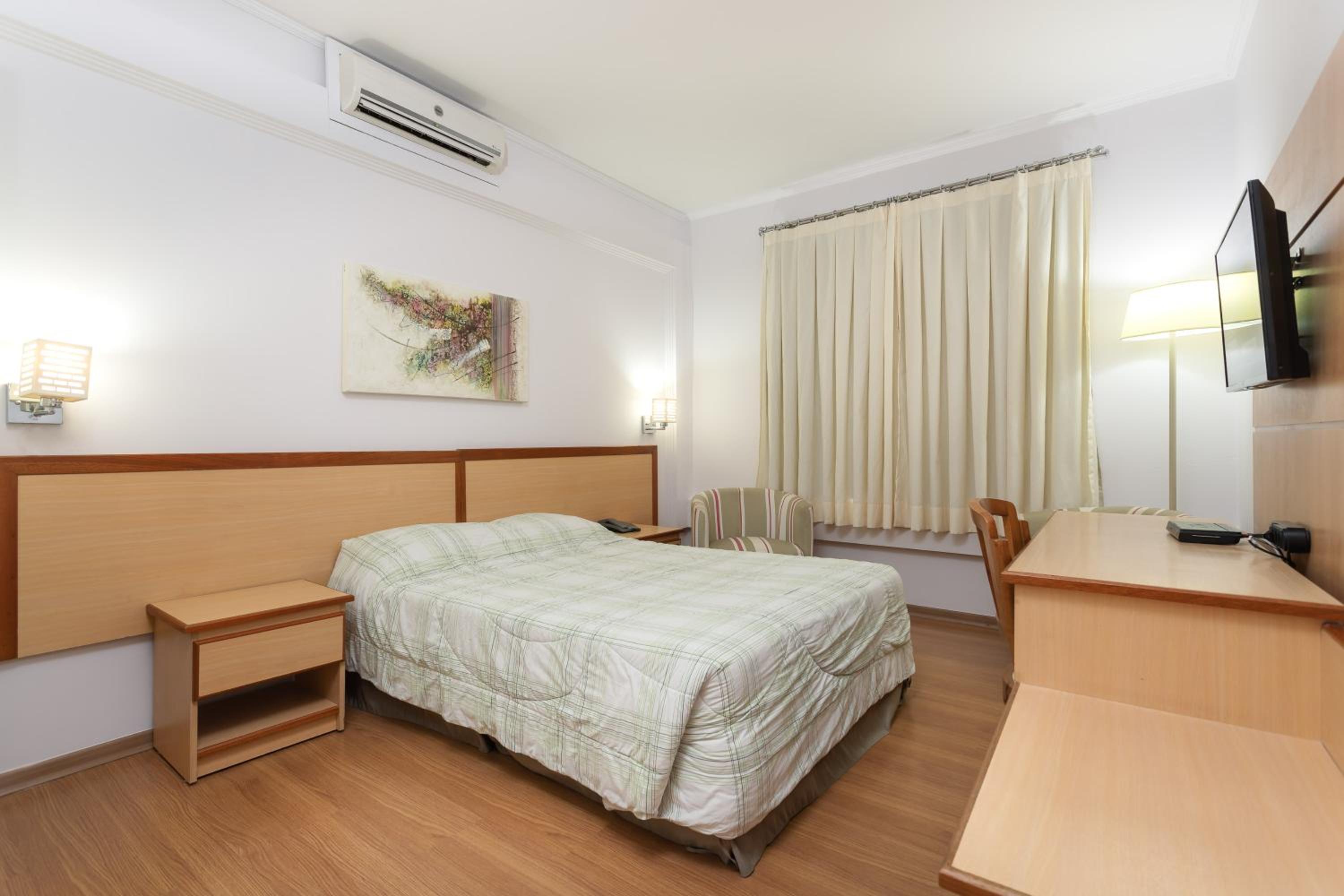Quarto confortável, ótimo ar condicionado, atendimento muito bom e a localização era ótima, bem pertinho de um evento que tínhamos na rua de trás. Quarto simples mas muito limpinho e café da manhã muito bom e farto. Faz muito tempo que não vejo tantas opções de bolos disponíveis no café além de outras coisas.
