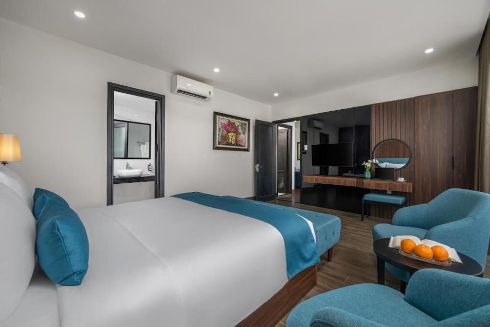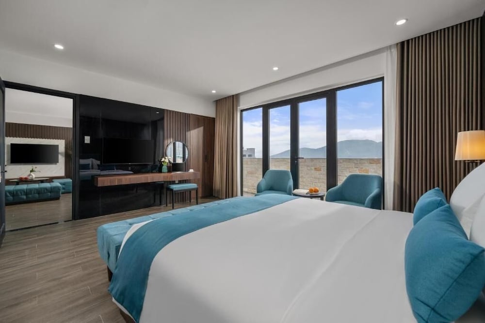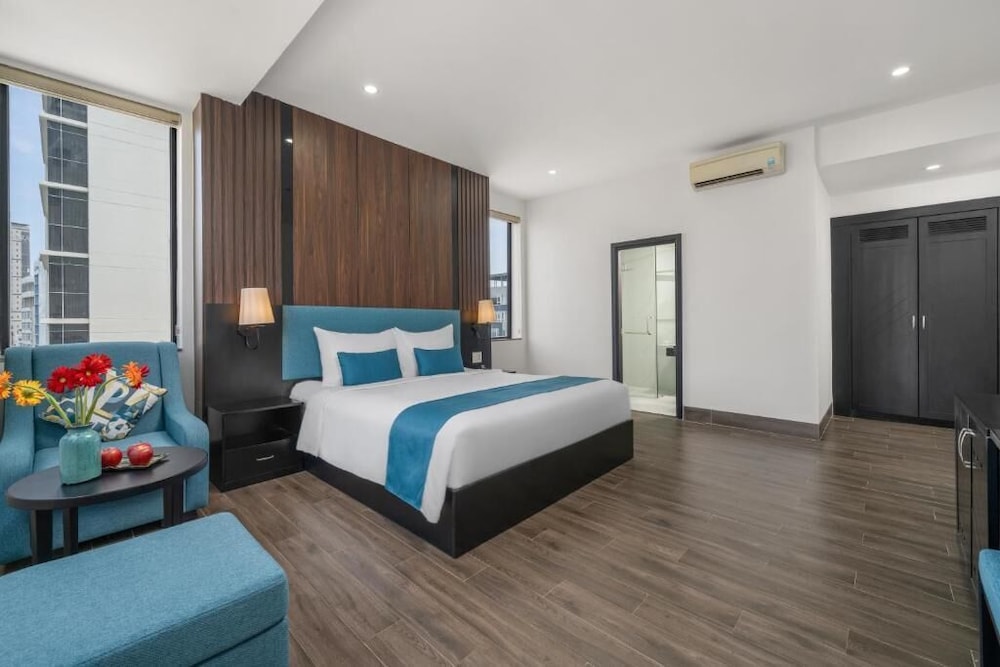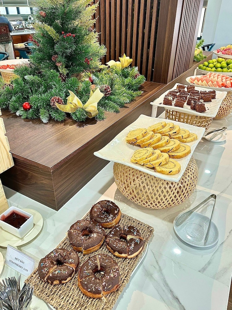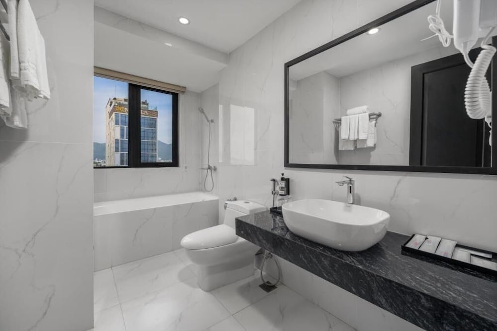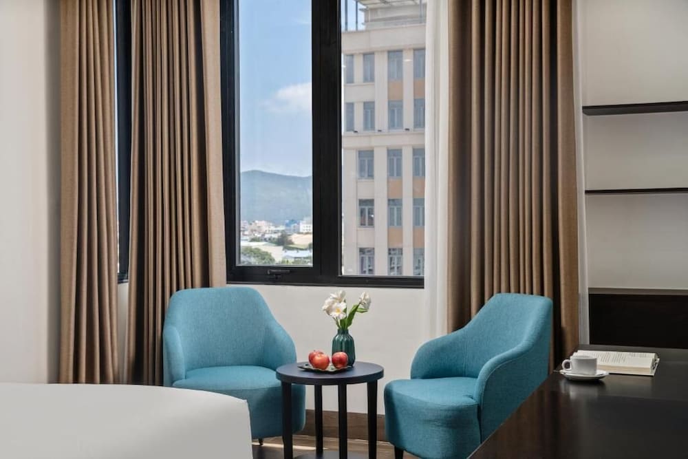 The hotel description makes it sound as if it's close to attractions and the train station. While it wasn't bad, it wasn't conveniently located. We had to walk a long way to get around. The staff spoke almost no English. We tried to hire a private car from there to Hoi An and ended up on a bus with broken seats and windows covered in black grime. We asked multiple times if she was booking us a car and she replied each time "yes! A car, not a bus." The staff was friendly, just unable to be helpful. The room was not well kept, the construction and cleaning both lacking. There was hair in the bathroom, stains on the sheets , and just poor house keeping in general. There were gaps in the tiles in the bathroom and dried glue all around fixtures. The breakfast was OK, nothing to write home about. So far this is the most expensive place we've stayed in Vietnam and it was the most disappointing.