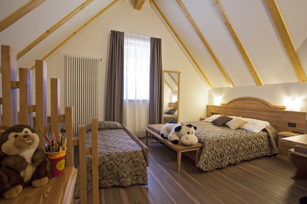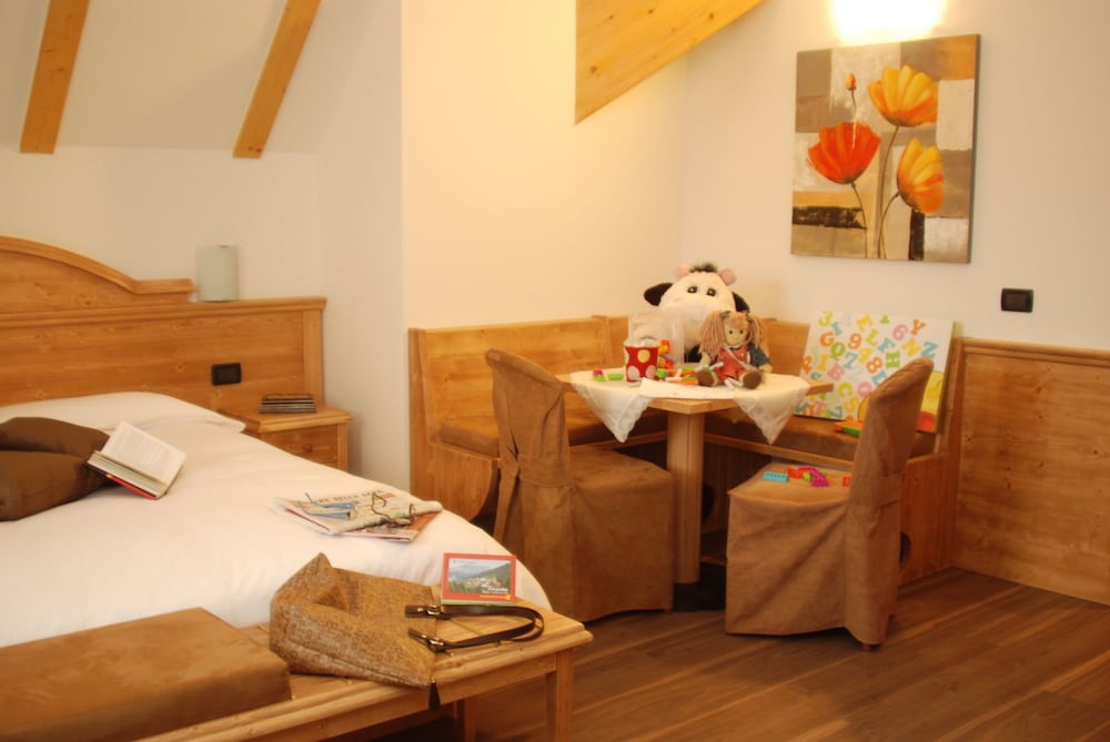 Ottima posizione, sia per il paese che per gli impianti. Camere belle. Colazione buona e abbondante. Spazi comuni confortevoli. Molte attività per bambini