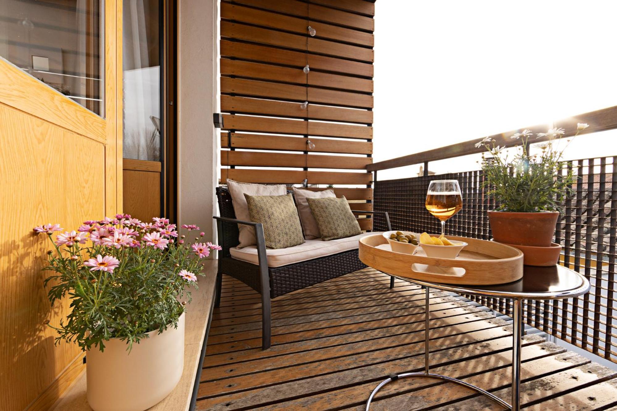 La zona de jardín muy justa