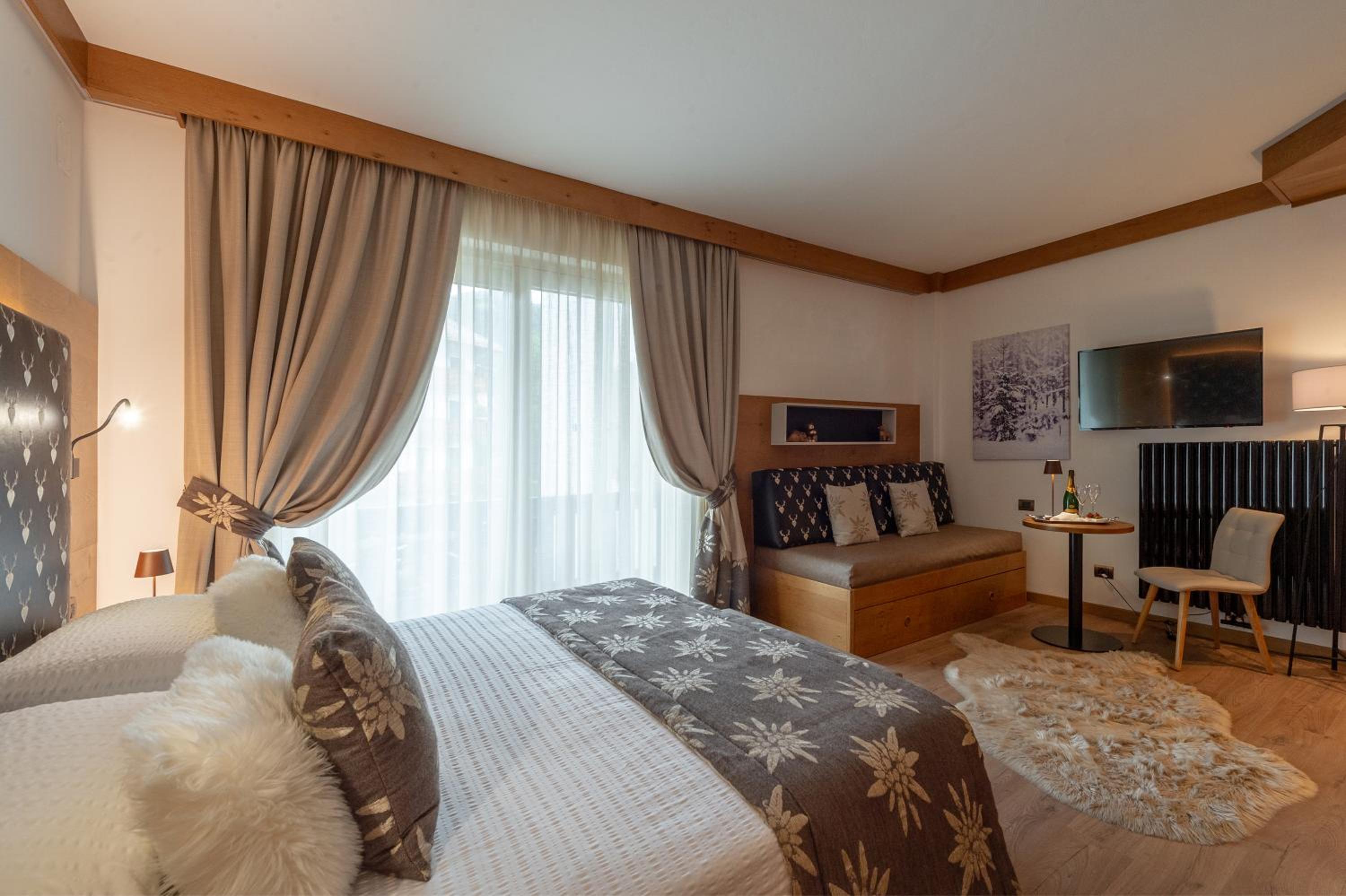 Indulge in comfort at Brunet - The Dolomites Resort with rooms featuring free WiFi, LCD TV, and picturesque mountain views.