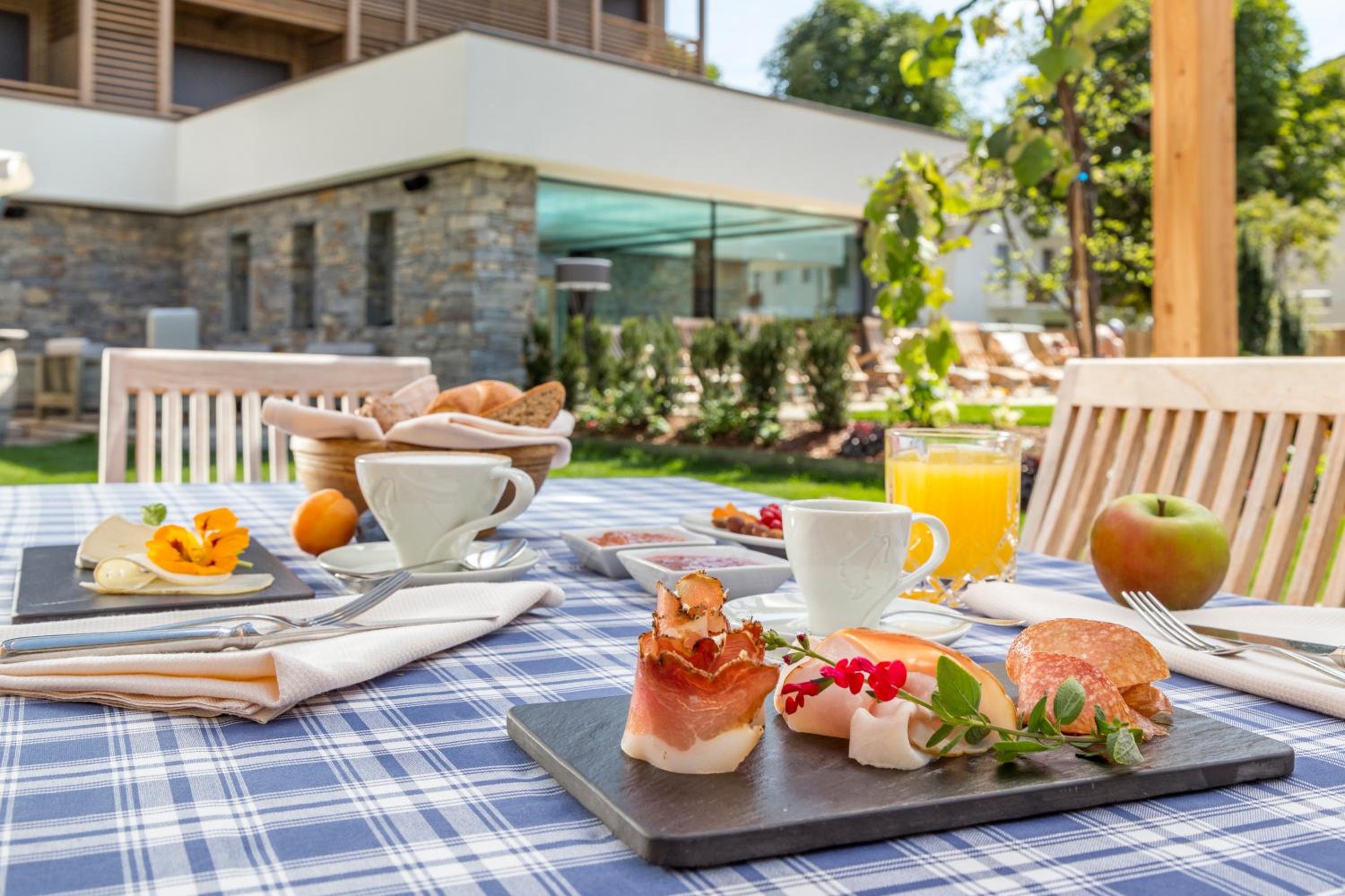 Un hotel moderno che mantiene lo stile montano. A pochi passi dal centro di Brunico ( consiglio di andarci a piedi lungo la ciclabile che costeggia il fiume). La prima colazione super, con prodotti tipici e di qualità. Da provare la spa con piscina e saune. Anche il giardino merita un applauso 👏 , molto curato e pieni di fiori ( noi ci siamo andati a luglio) .