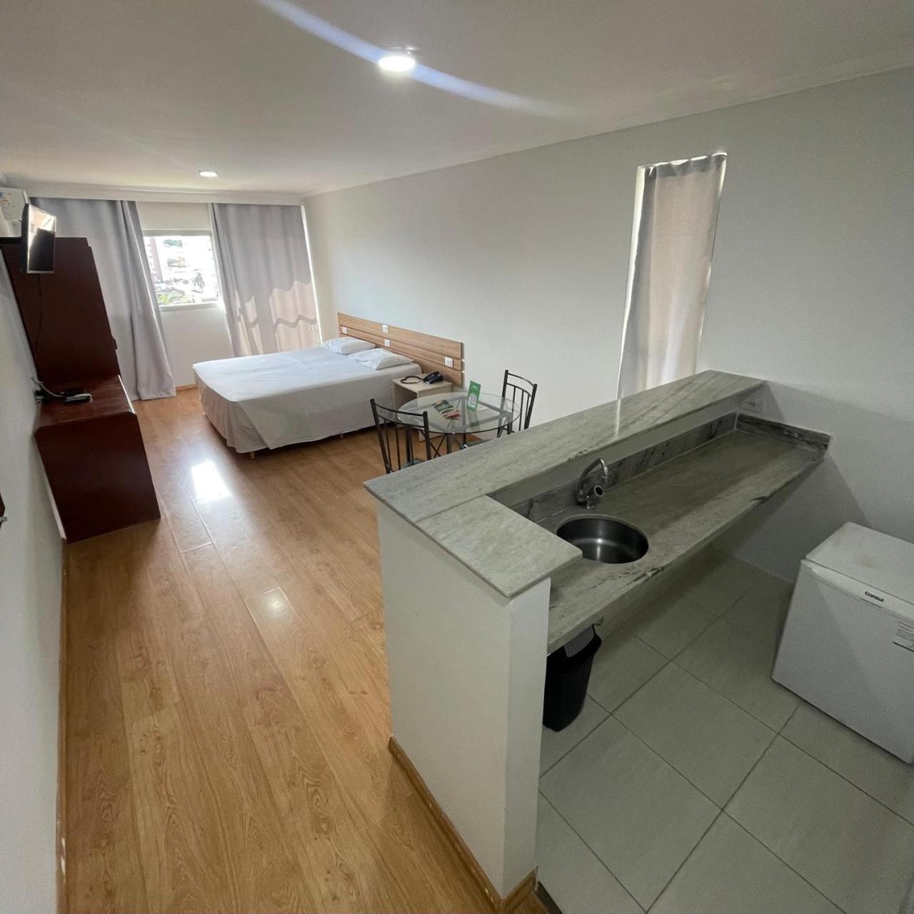 Excelente atendimento, a equipe era atenciosa e prestativa, mesmo com o hotel lotado fomos muito bem atendidos, desde a recepção às camareiras, todos educados e rápidos em atender. Diferencial: quarto muito espaçoso (com cozinha e copinha). O banheiro é um pouco antigo, mas nada que desabone a estadia. Cama e chuveiro bons, ar condicionado silencioso, linda vista (11º andar). O café da manhã muito bom, saboroso e variado. Áreas comuns agradáveis. Localização é ótima, tanto visualmente como para deslocamento. Estacionamento gratuito/incluído na estadia, o que considero um grande diferencial, pois muitos hotéis que reservei por aqui cobraram esse valor à parte. Considero um bom custo-benefício. Com certeza me hospedaria novamente.