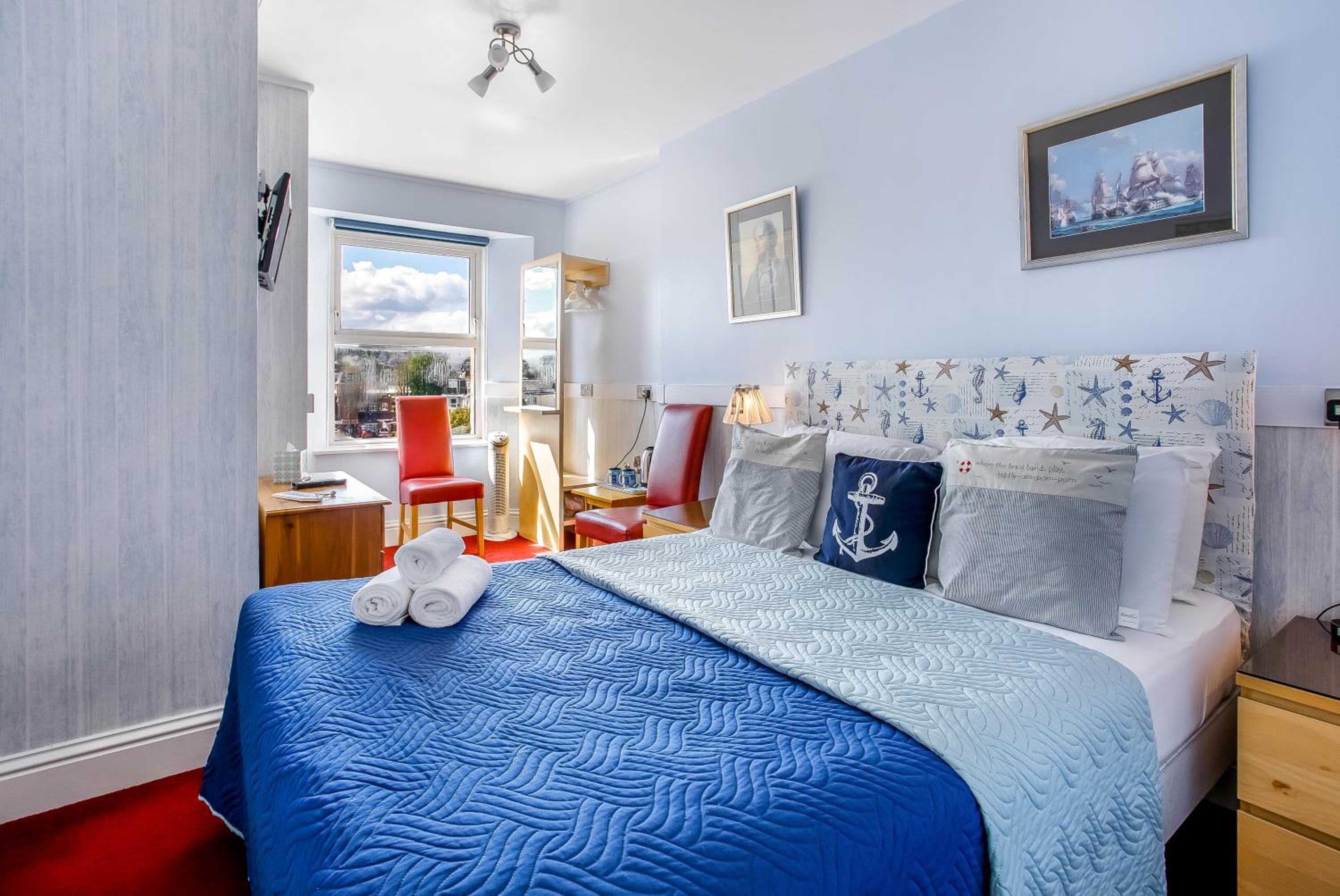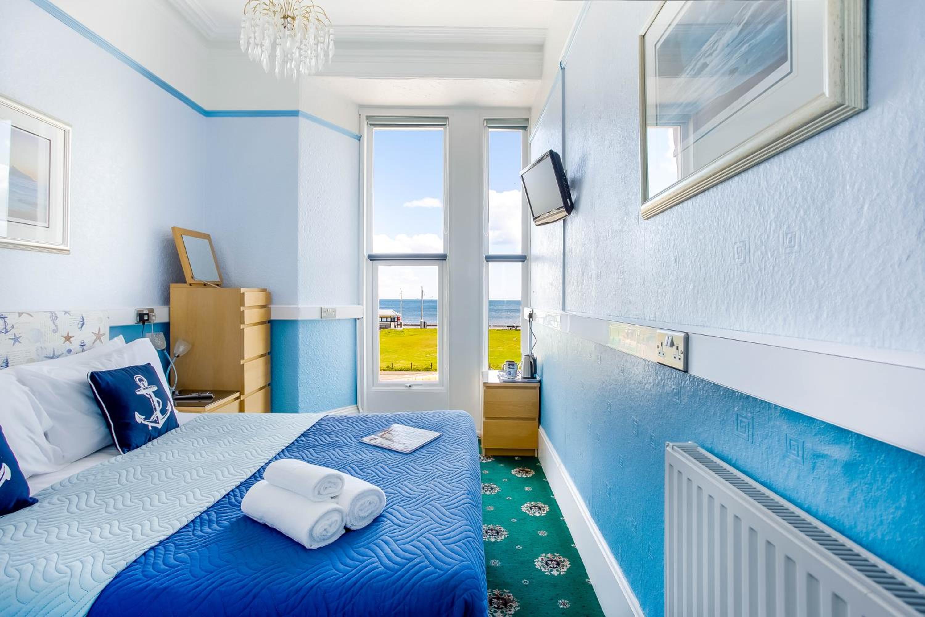Great location, on the seafront with a great view across the bay. I parked with ease, reverse in though! Check in was easy and owners really friendly. I was up two flights of quite steep stairs, not a problem for me but be wary if you can’t do stairs very well. Decent sized room with a comfy double bed and spotless bedding. The bathroom was pretty big for a B and B, and it also had a bath which is quite unusual. The towels were great too, bath sheets that were pure white. The decor was dated, but to be fair it was very clean. There were three good sized drawers and a very small hanging space but it was ample for us. Also, two chairs that were comfy enough for a wee seat with a cup of tea instead of having to sit of the bed. Really decent room for the fair price I paid. I didn’t pay extra for breakfast so can’t comment on that.