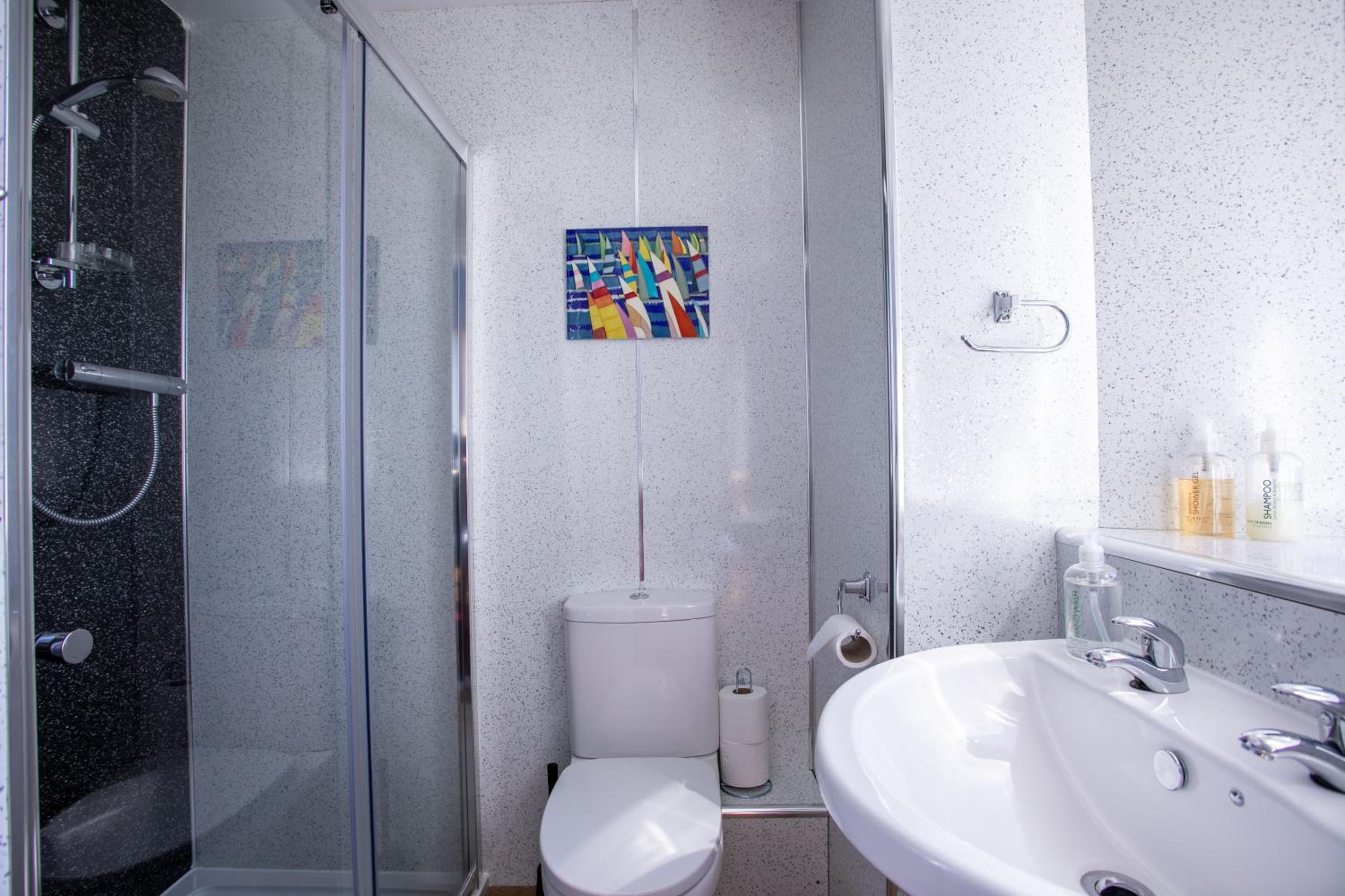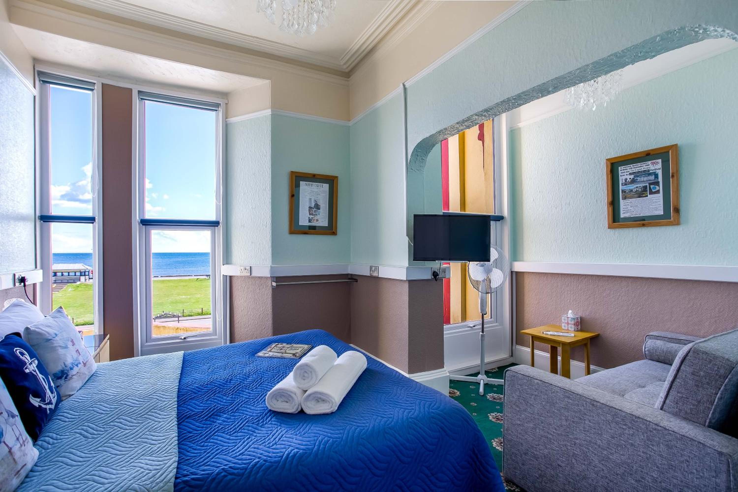 Enjoy a range of comfortable en suite rooms with free Wi-Fi, sea views, flat-screen TVs, hairdryers, and tea/coffee facilities. Each room also features a modern en suite shower room for your convenience.