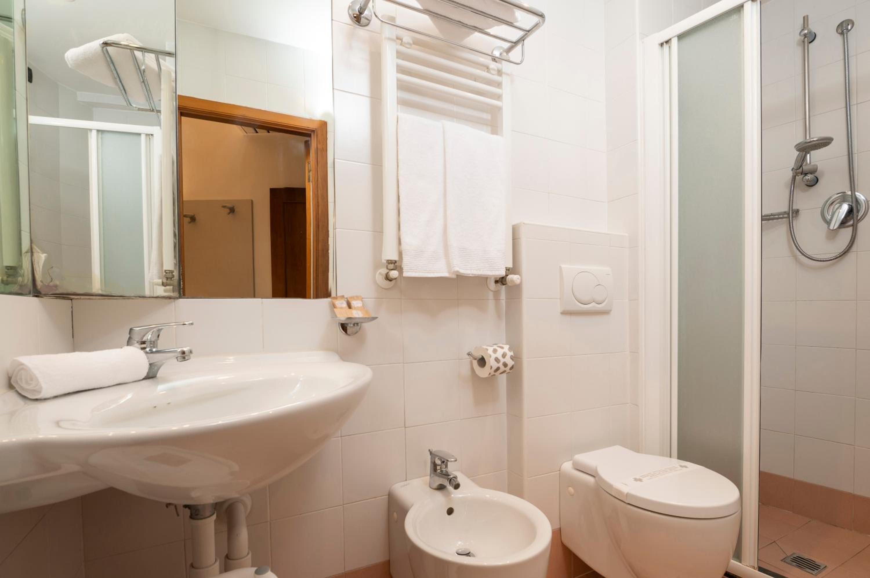 Le camere non sono insonorizzate, il bagno è piccolo con la tenda nella doccia, arredi e finiture usurati