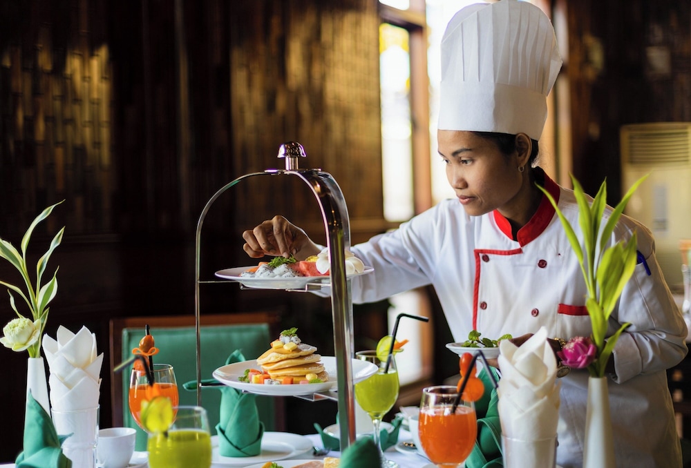 We stayed for 4 days, staff were kind and very helpful, the room was wonderful. The breakfast noodles were a perfect way to start the day. Would recommend for a luxury stay close to town and the Angkor temples.
