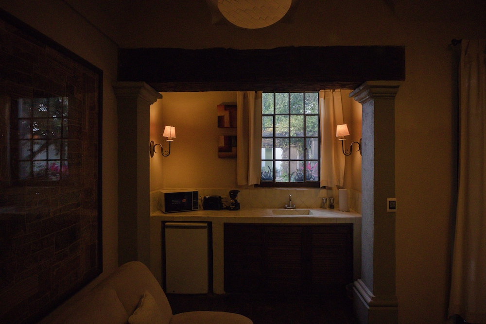 Beautiful quiet place!! Our room was gigantic, we had a sitting area with a dining table and a huge bathroom. They keep everything spotless. The hotel is walking distance to beautiful restaurants and the main town church (about three blocks away), yet far enough from all the touristic noise.