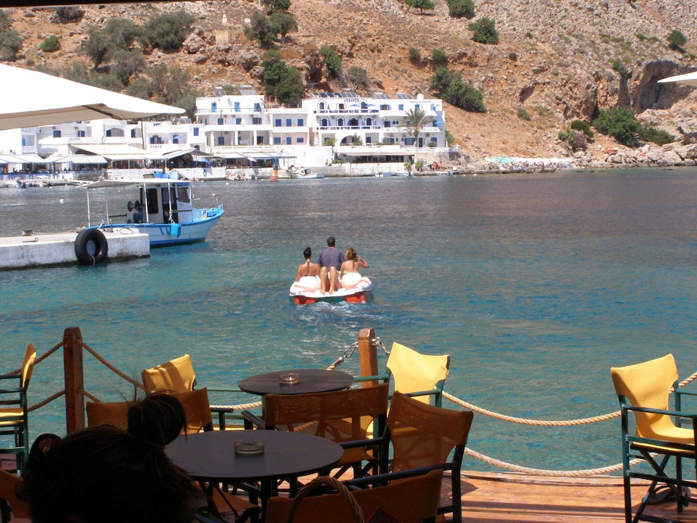 Loutro is wonderful and the hotel was perfectly positioned and the room fantastic- basic but that's all we needed. Be careful when ordering as some waiters don't speak English that well, but then I don't speak Greek! We did not catch the ferry at all, we walked and it was fantastic. Don't forget to stop at Sweetwater Bay for a swim.