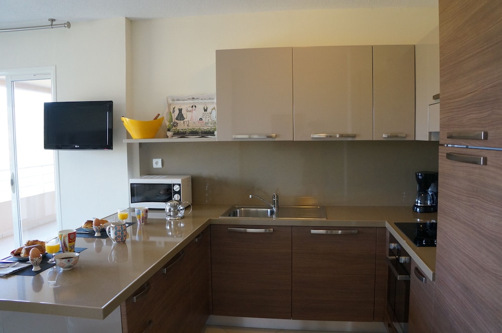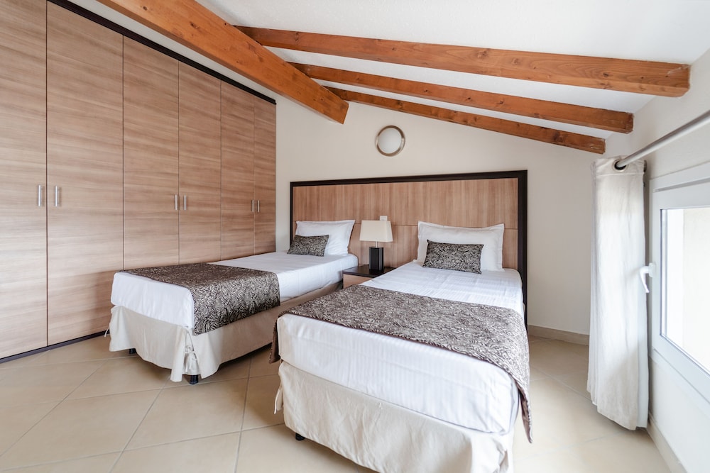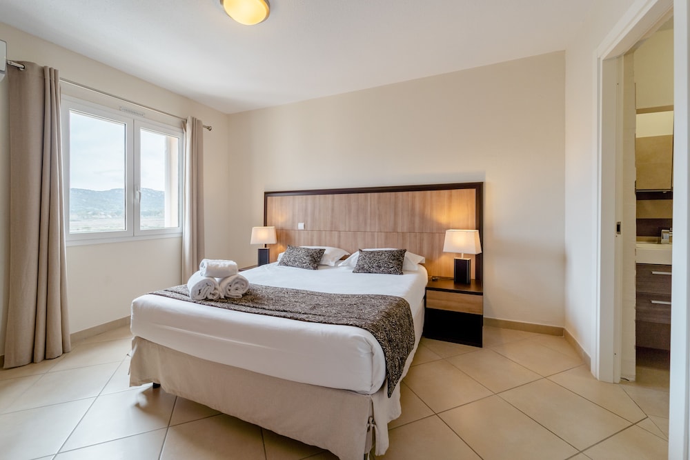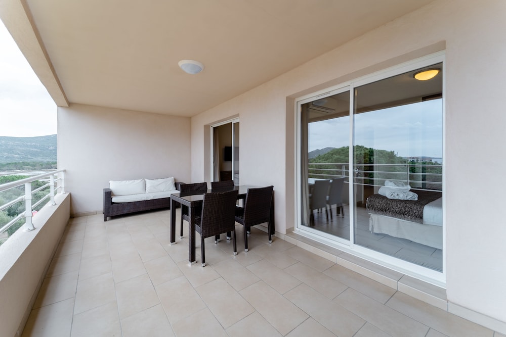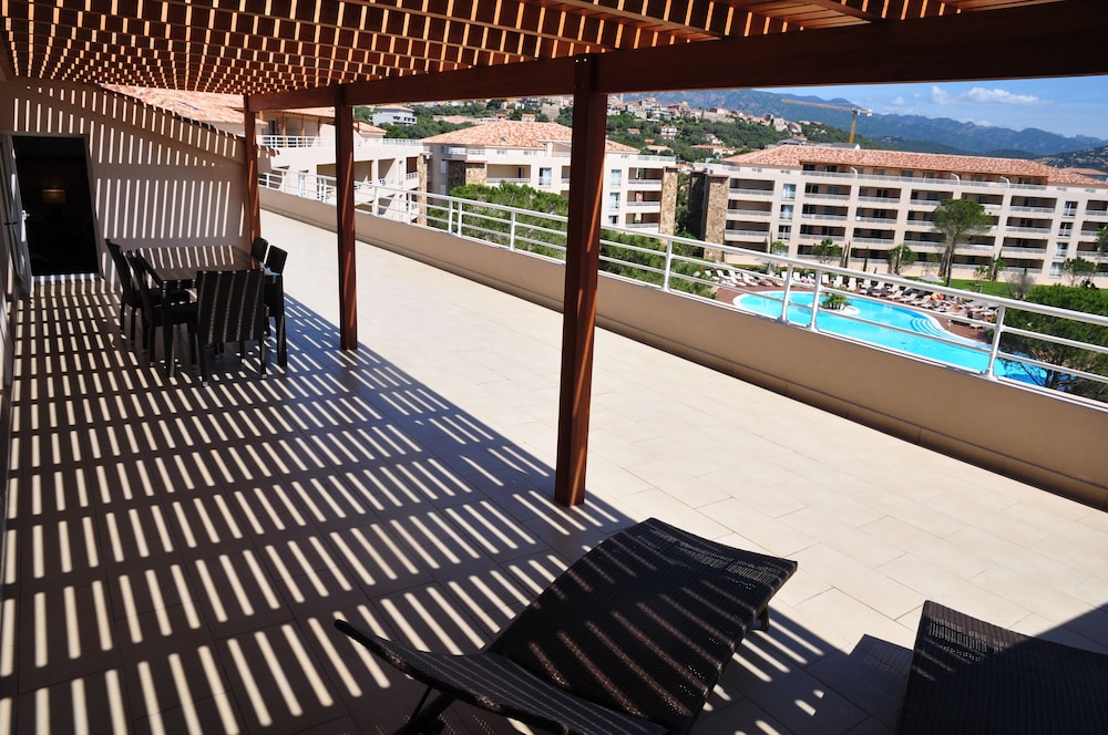 Great property with very nice pool area with plenty of chairs and sunbrellas Grounds are kept beautifully. Spacious apartments with double bathrooms and two bedrooms. Great location to visit southern Corsica from. Free sunbrella rental when going to the beach. Super market for groceries literally across the street. Free parking.