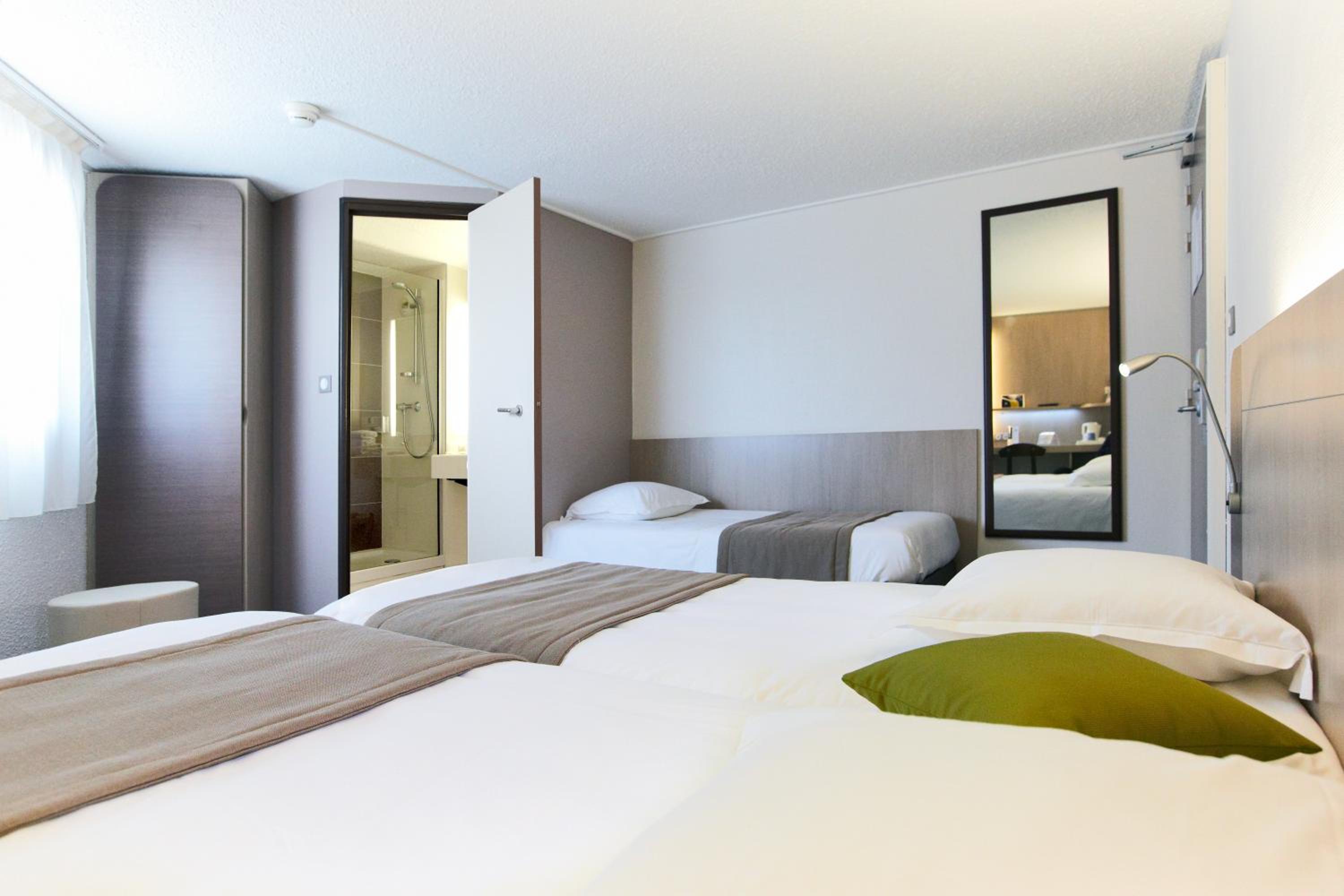 The Kyriad Hotel in Nevers offers comfortable, air-conditioned rooms with satellite TV and a work desk. Enjoy a relaxing stay in well-equipped accommodations designed for your comfort.