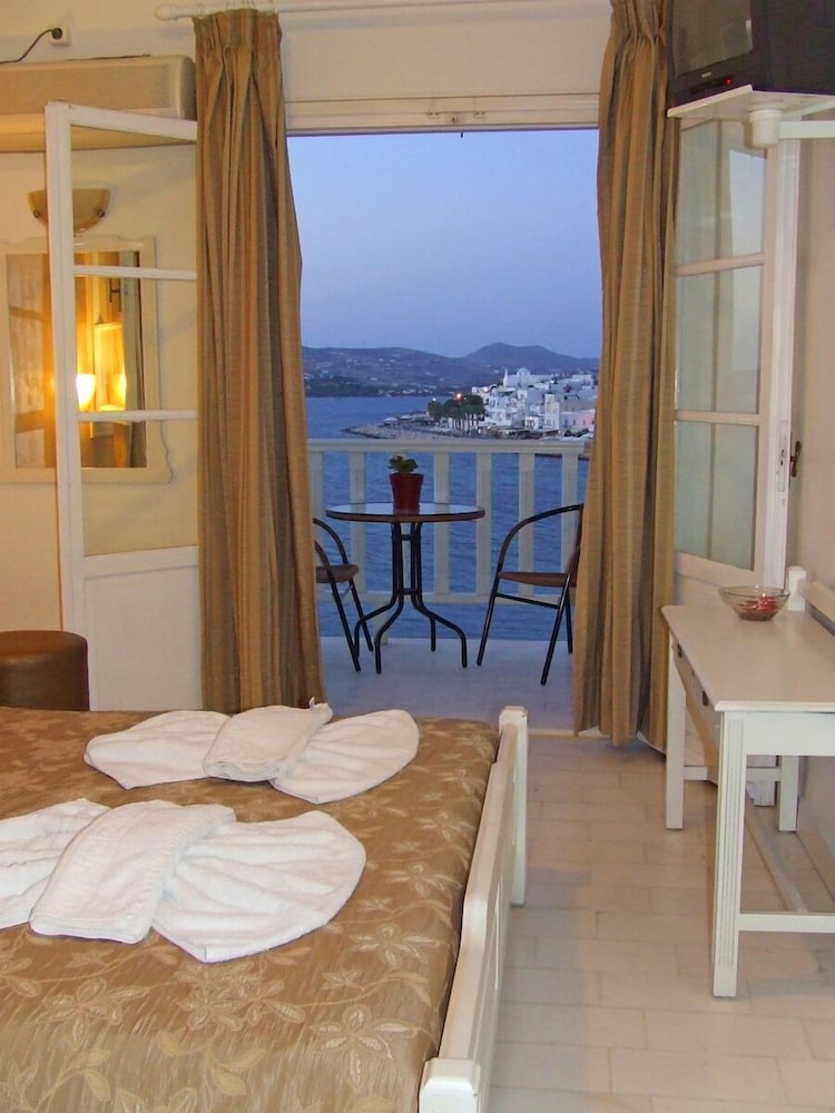 Overall Pandrossos was a great hotel. It overlooked the Aegean sea and were able to see sun from our balcony if wanted. Everything is walking distance from downtown Paros, shopping and restaurants. I would say our room has a very small shower not a lot of in room there.