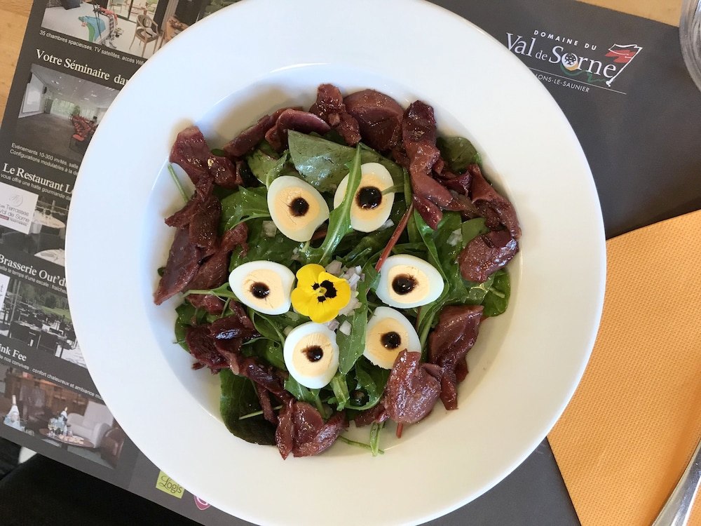 Arrivés à 16 h 00 nous avons pu profiter d'une fin de journée au bord de la piscine dans un cadre verdoyant (prêt de peignoir apprécié) et très calme (peu d'enfants et aucun bruit lié aux autres chambres notamment ce qui est très appréciable). Nous avons eu la flemme de sortir le soir pour diner et nous avons donc pris le repas sur place qui nous a un peu déçu.
