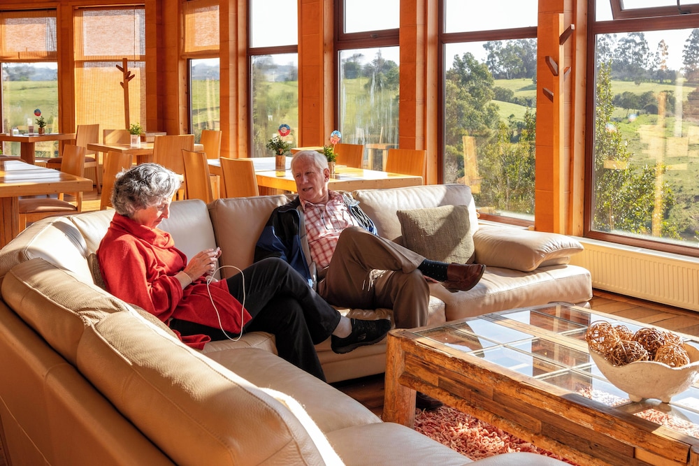 12/29/17 What a wonderful place to relax, truly relax, in a gorgeous, private setting...a lovely walk through beautiful farm/grazing land takes you down to the shore or up to a tiny town or into a lush forest. Dinner here is pricey, but how could you get a better, more dramatic, every-shade-of-green below you view?? The staff is professional as well as relaxed and friendly. The modern innovations of the architecture make you feel you're in a wide treehouse with splendid views all around you. Interesting guests come and go within the quiet. I dream of the green...