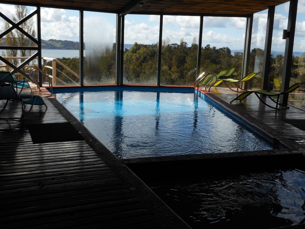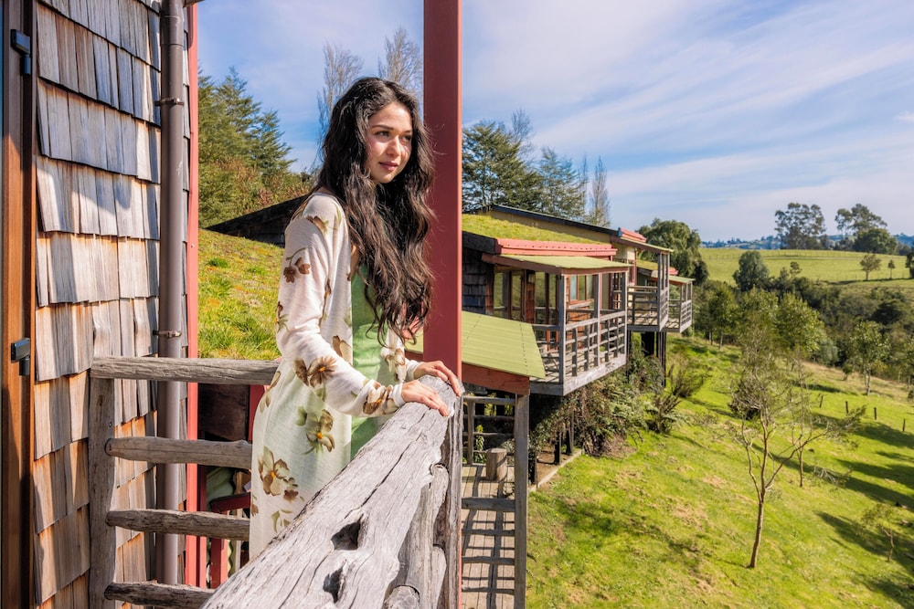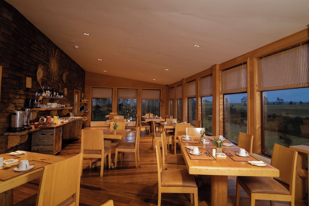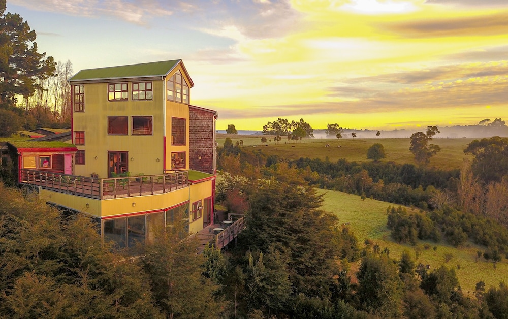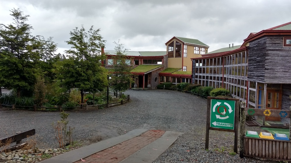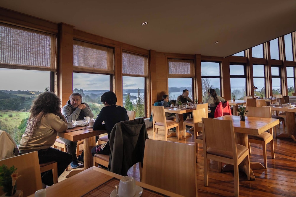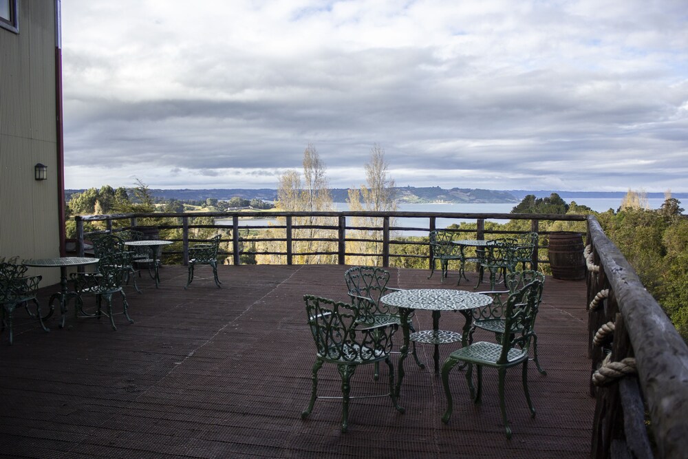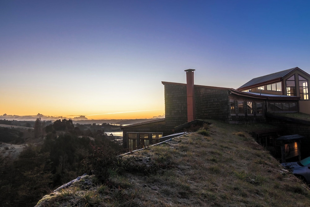 Hotel is set up above the tree tops across from Castro. It takes about 15-20 minutes depending upon traffic in town. Road to the hotel for about 2 km is a one lane gravel road that has some fast twists and turns. Nothing your car can't handle, but good to know about ahead of time. They have a really nice breakfast in the mornings and I would absolutely recommend the hotel for dinner as well. While dinner is not included, food was delicious and after a long day you probably do not want to venture out to dinner and come back on the narrow roads.