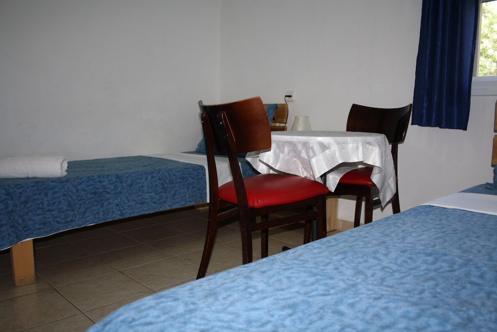 Although centrally located, this was a far cry from being a motel. It was more like a boarding house. As the only guests, our โhostโ placed us into a very small room that could barely accommodate our luggage. The towels that weee provided had no absorbing power left in them, the shampoo bottles were used, half empty, and there was nobody to speak to in the evening. As per the Expedia ad, there was a pool available, free parking, and a gym. No such things were available. We had to pay 80 NIS per night for parking.