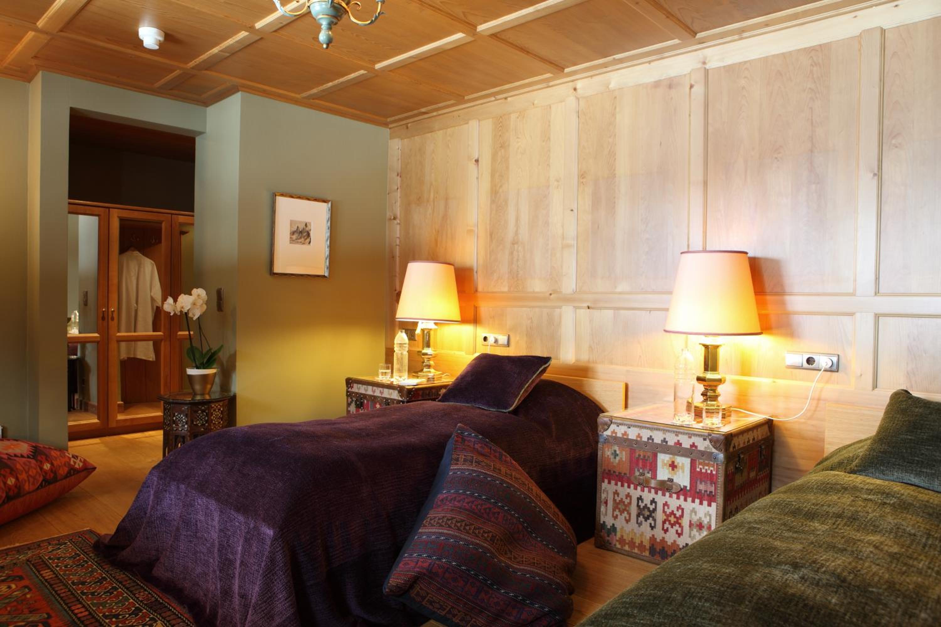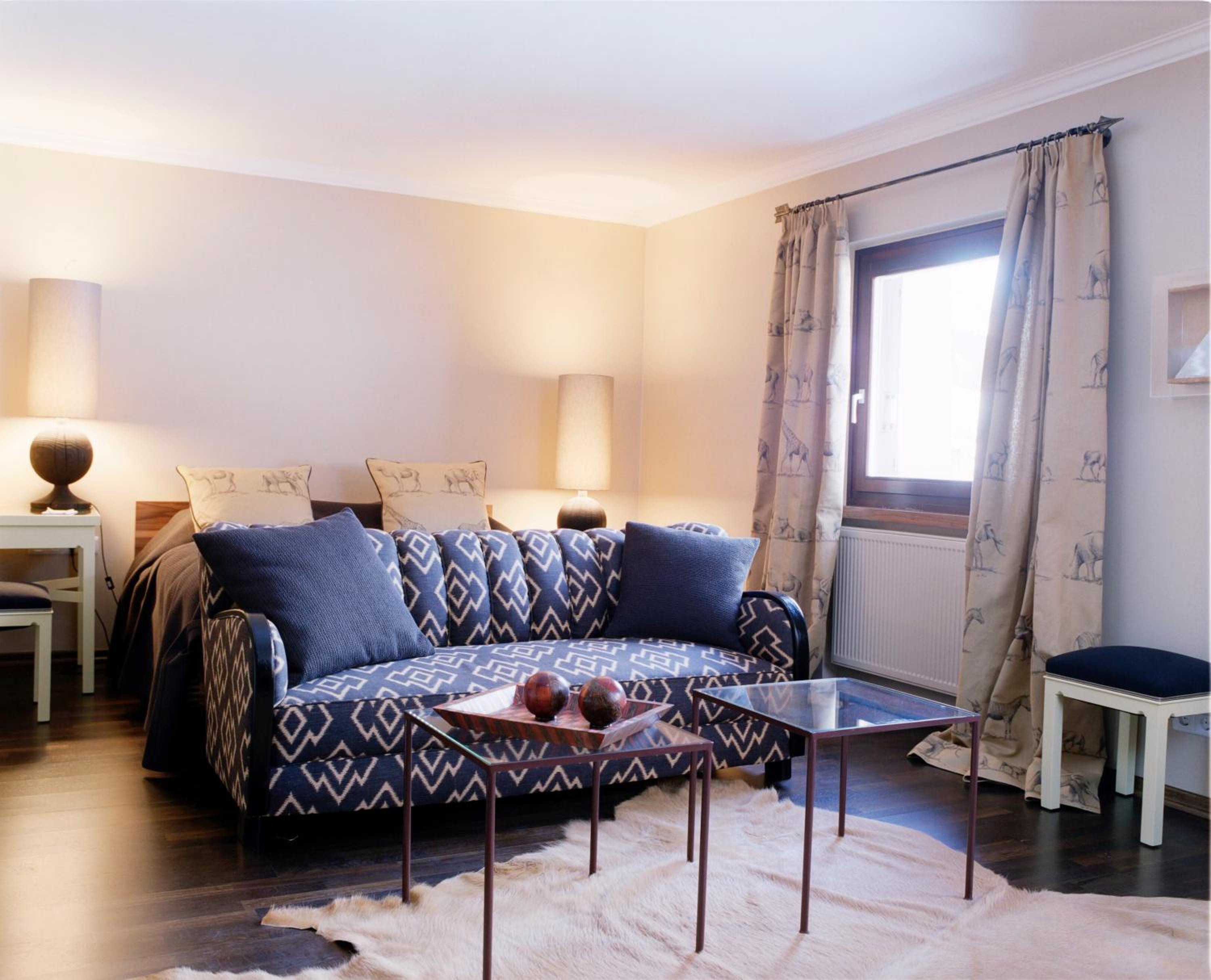 Individually Decorated Elegant Rooms: Each room at Kristiania Lech is uniquely themed with contemporary art and antiques, featuring a free minibar and complimentary WiFi.