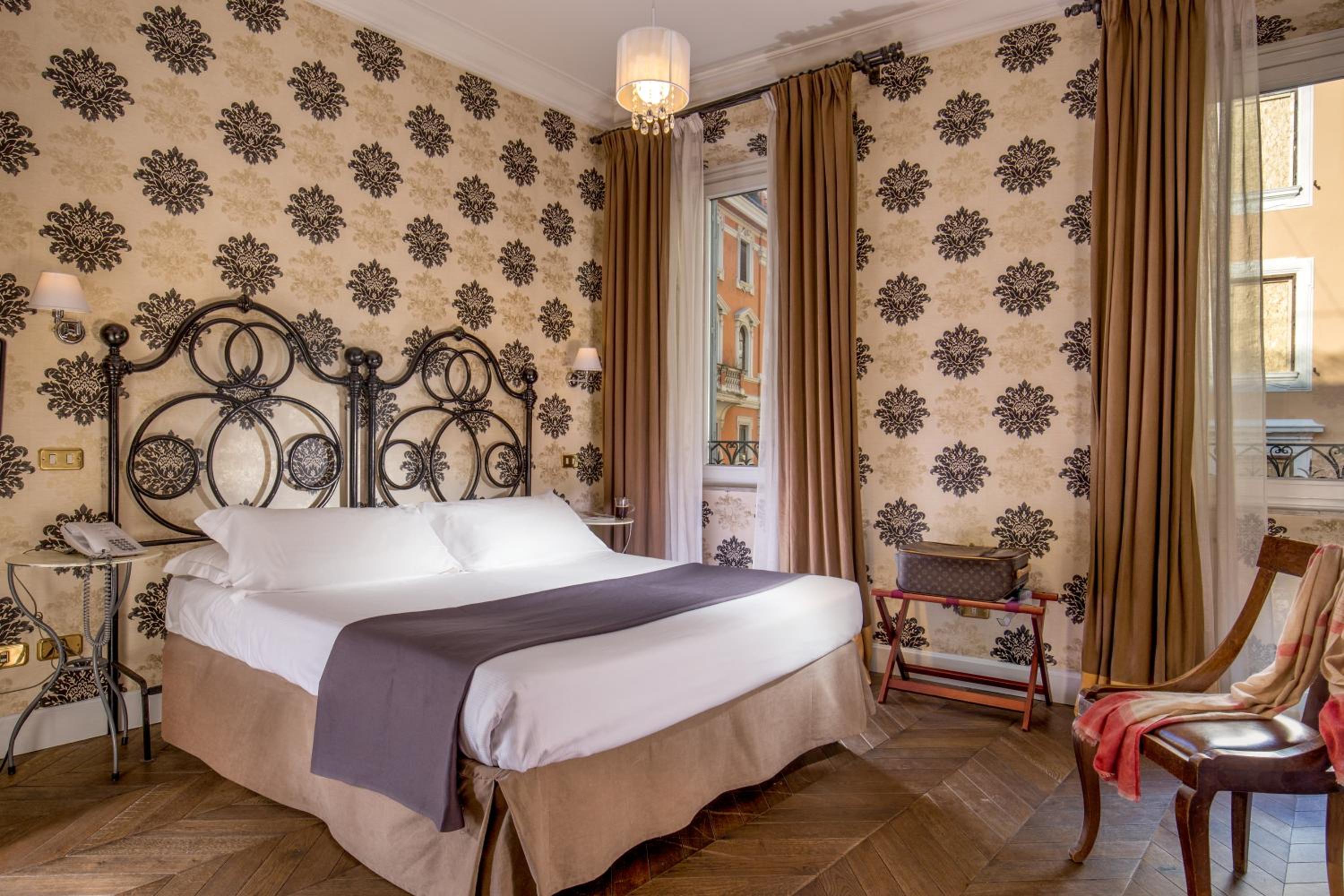 Charming small hotel near the Spanish Steps, vine-covered on a quiet street just off the Tiber. Very friendly English-speaking staff. Old-school style, within easy walking distance of many of the great historic sites, museums, restaurants, etc.
