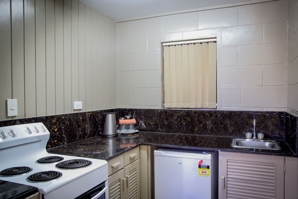 Relax in one of our 54 air-conditioned rooms, each equipped with kitchenettes featuring refrigerators and ovens—ideal for extended stays or casual dining.