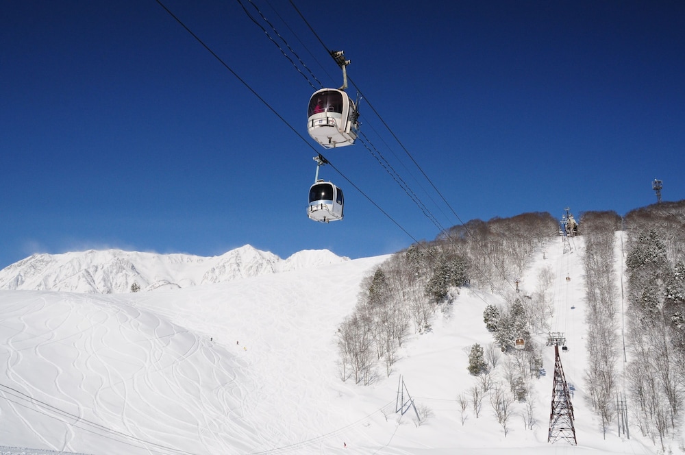 This is a lovely new hotel, very helpful friendly staff and one of the very best Onsens we’ve experienced in Japan (this is my third trip). Really fantastic- new, clean, three pools- outstanding. The hotel is 35 minutes S of Hakuba by car and an hour by shuttle bus, and the shuttle only runs to and from once per day so without a car you don’t have many options. Omachi, the nearest town is a fairly long walk. Recommend having a rental car if you stay here.