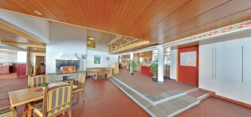 situated at the lake, great views, good hiking and climbing possibilities, lots to do inside the hotel during a rainy day, food average, our kids (9 and 7) enjoyed their stay (we stayed one week), room was small but sufficient for 4, guided hikes and activities for the kids and parents are offered during the week