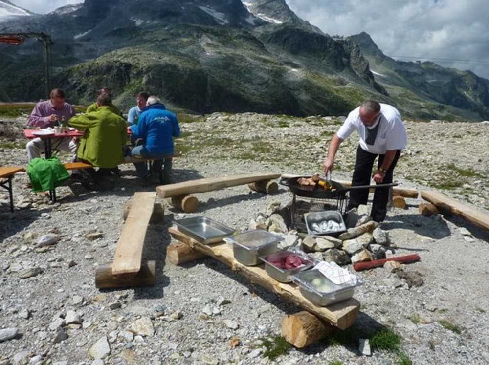 Idealer Ausgangspunkt für Touren in die umliegenden Berge. Man ist - mit Hotelkomfort - auf 2.300 hm und kann so, selbst wenn man nicht geübt ist, locker einen 3.000er erreichen.